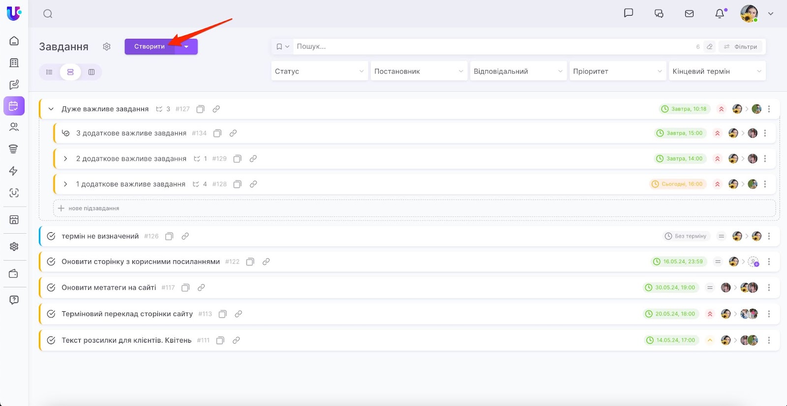 Для зручності на наглядності роботи із підзавданнями в Uspacy доступний новий режим відображення. А саме Ієрархічних вигляд.