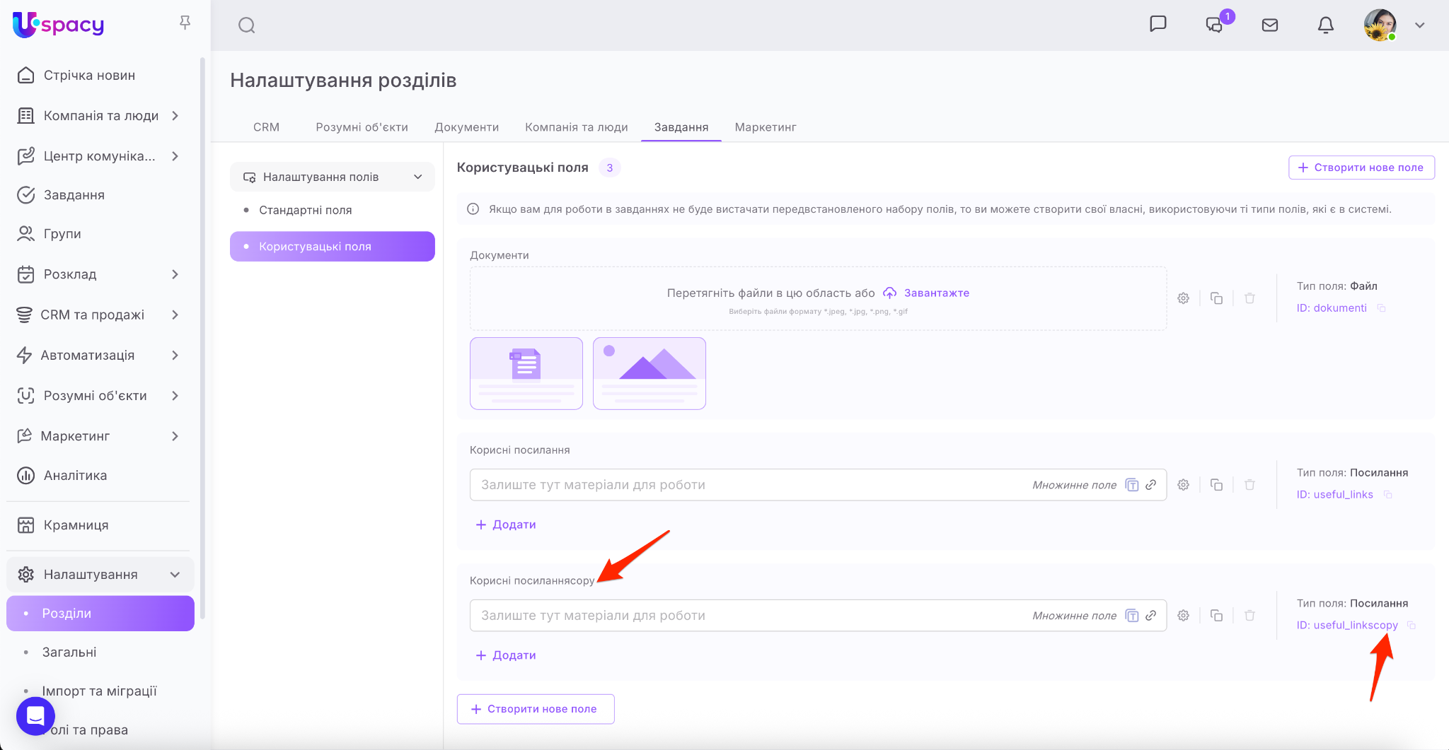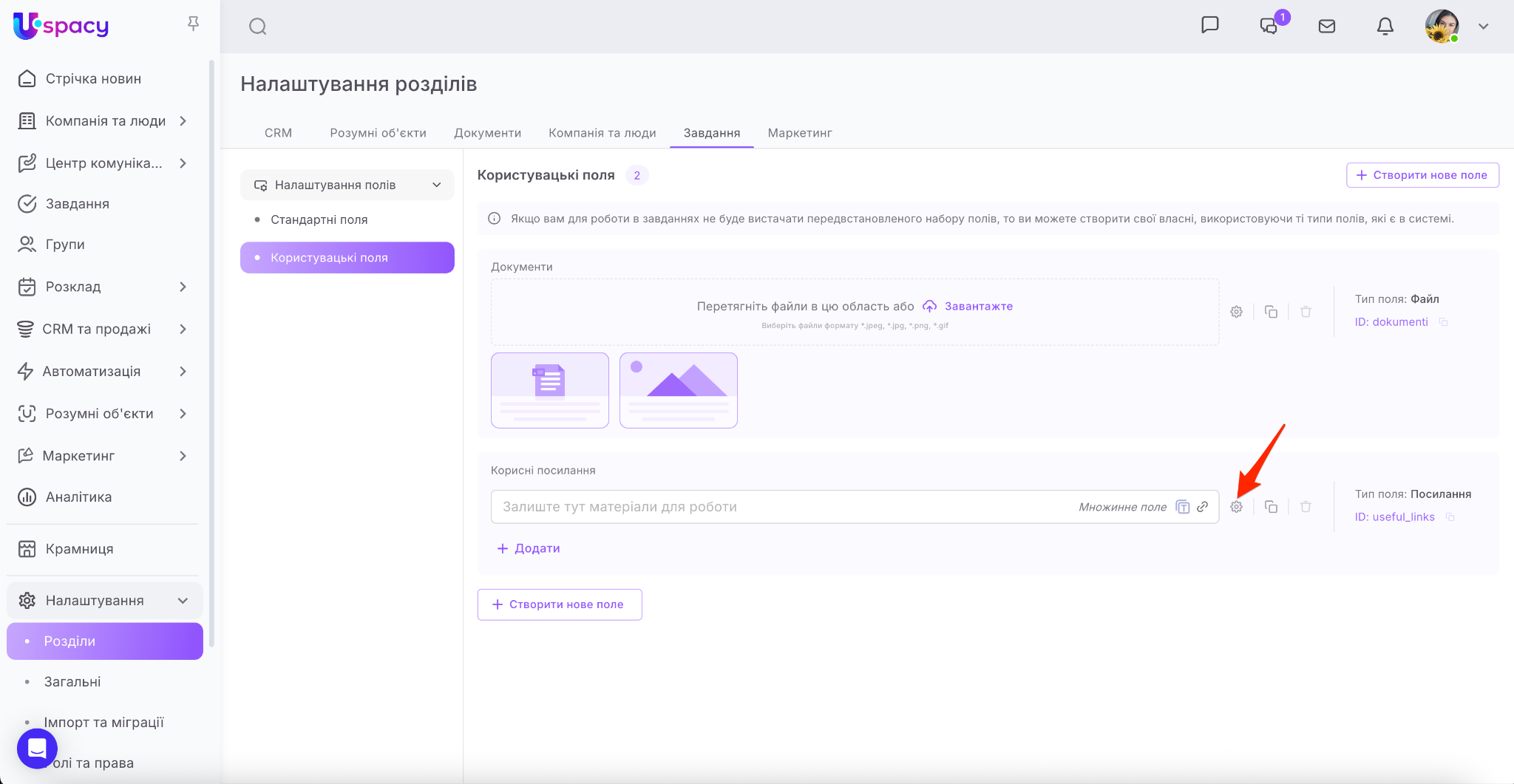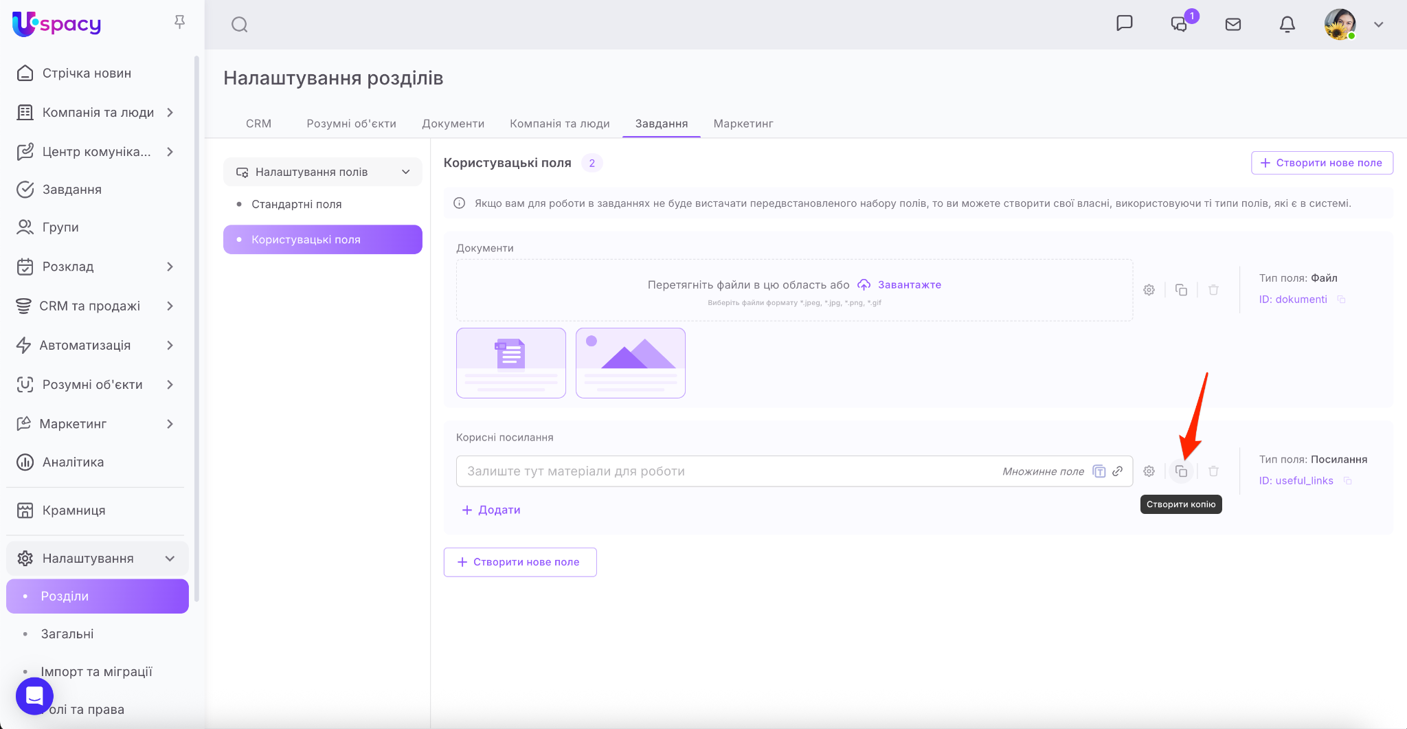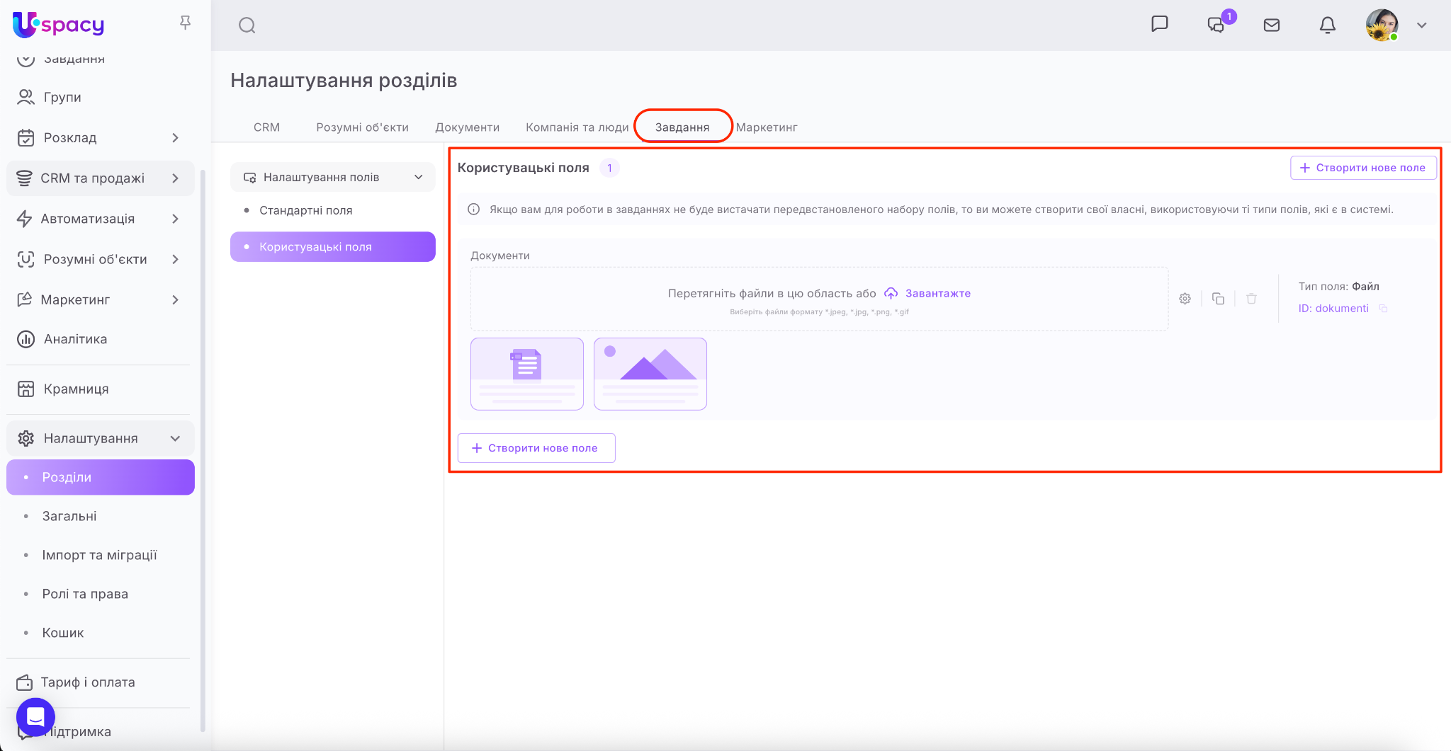 ❗️Доступ до створення та налаштування користувацьких полів має лише адміністратор і власник Простору.