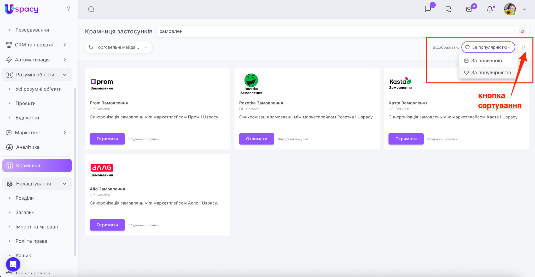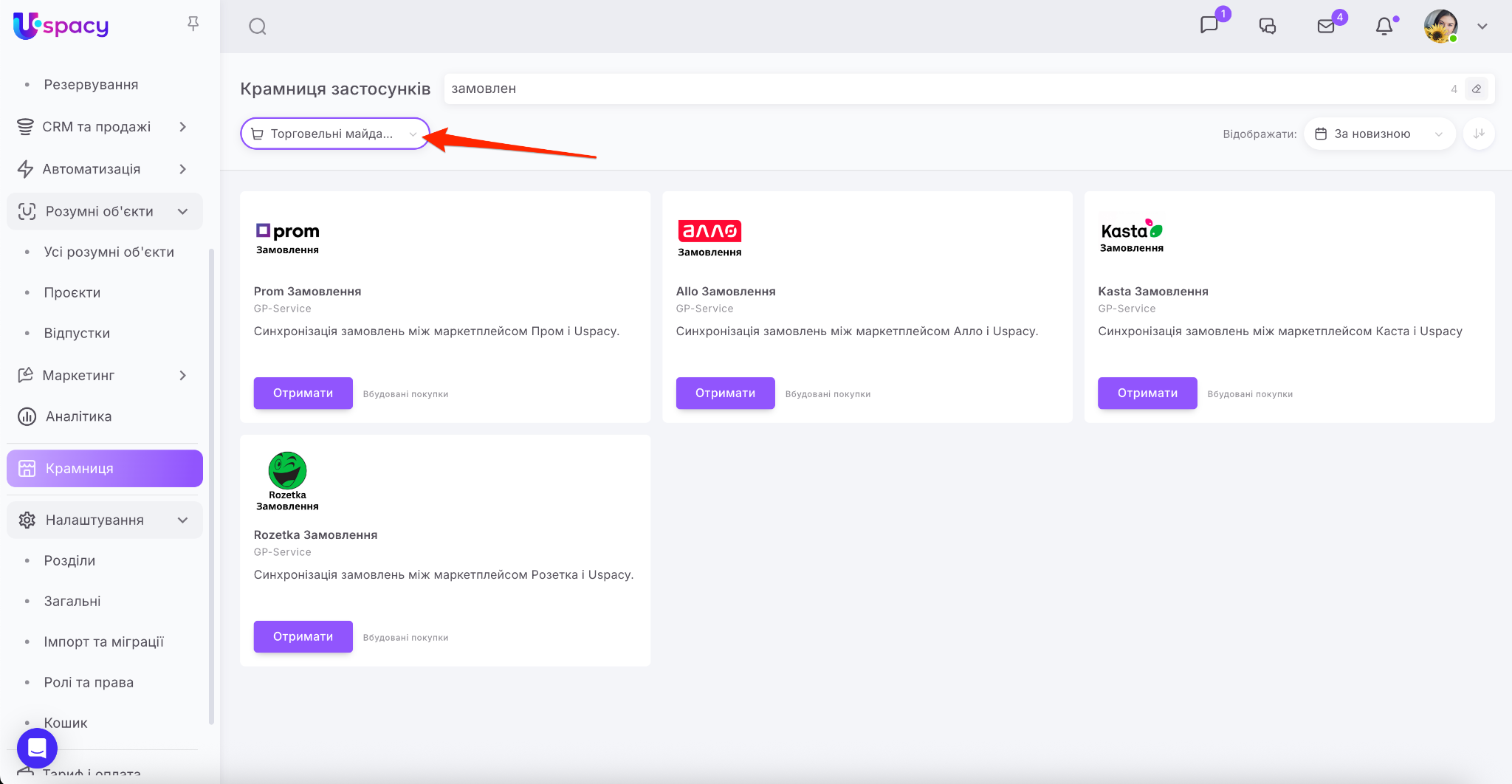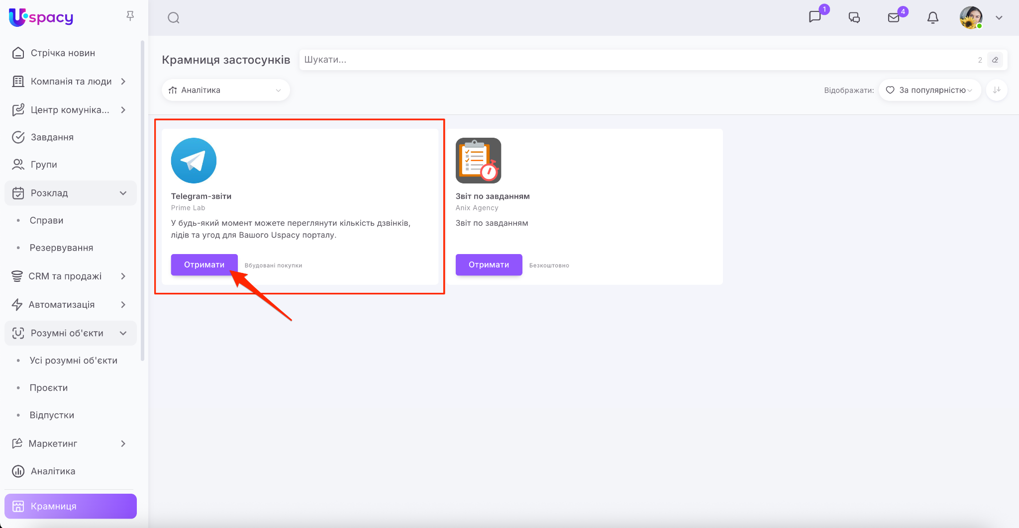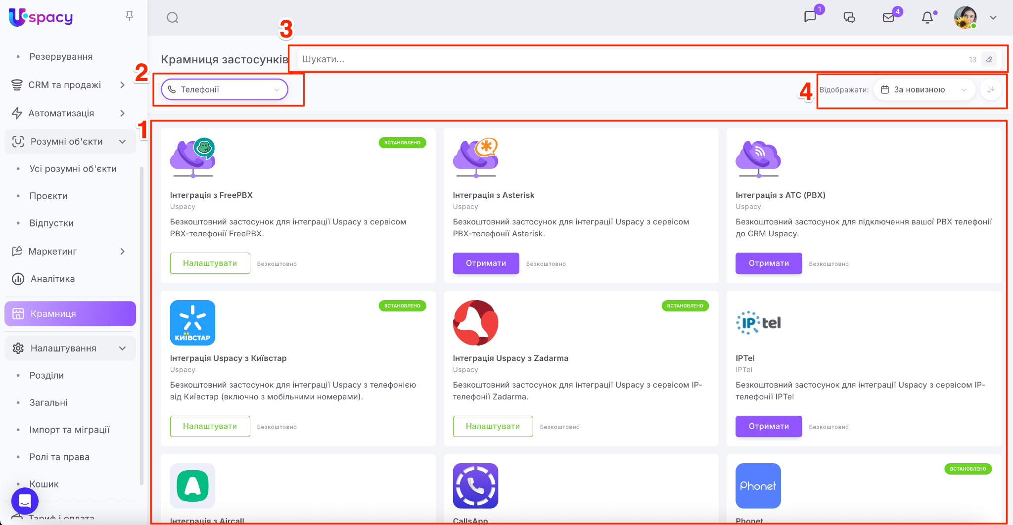 Крамниця в Uspacy – це маркетплейс застосунків для розширення можливостей вашого Простору. Тут ви знайдете інтеграції для комунікацій, продажів, роботи з документами, оплат та автоматизації.