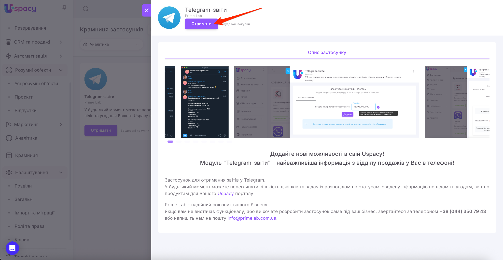 🟣 Застосунки від Uspacy – безкоштовні, тобто їх встановлення та використання не оплачується. Але їх робота направлена на інтеграцію зі сторонніми сервісами, які в свою чергу можуть вимагати платних підписок або оплат на своєму боці (наприклад, інтеграція з WhatsApp, Viber, Make, Zapier, сервіси телефонії).