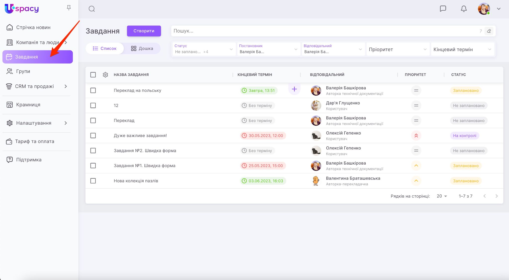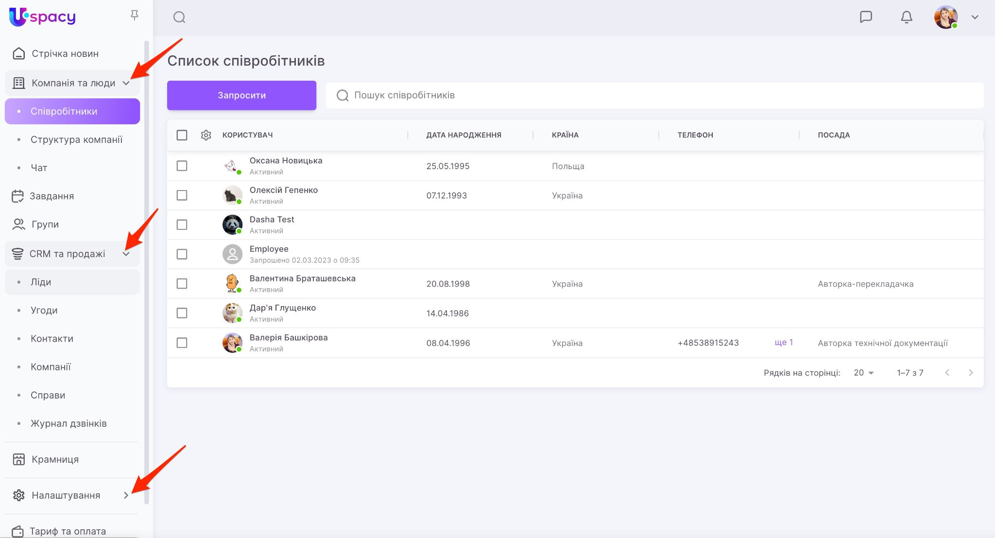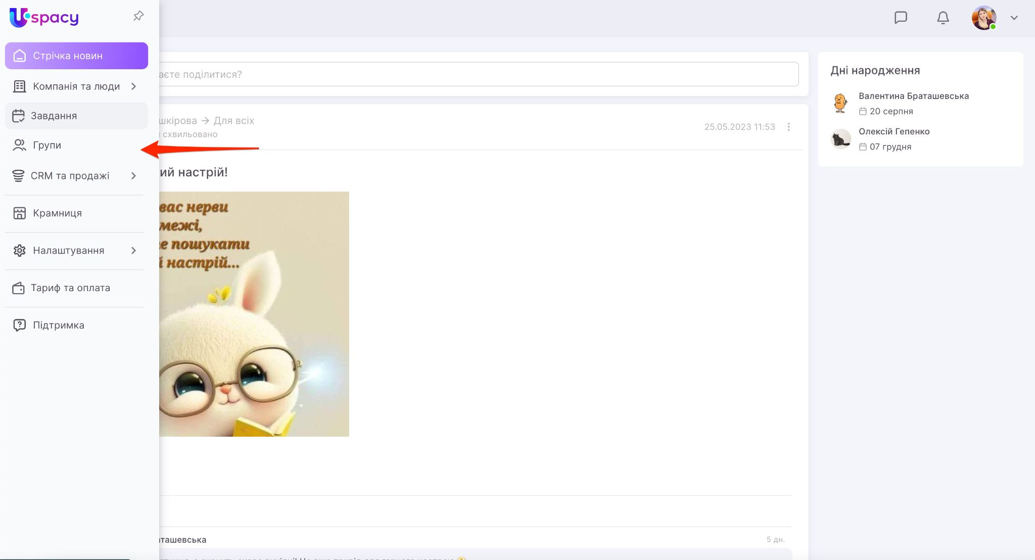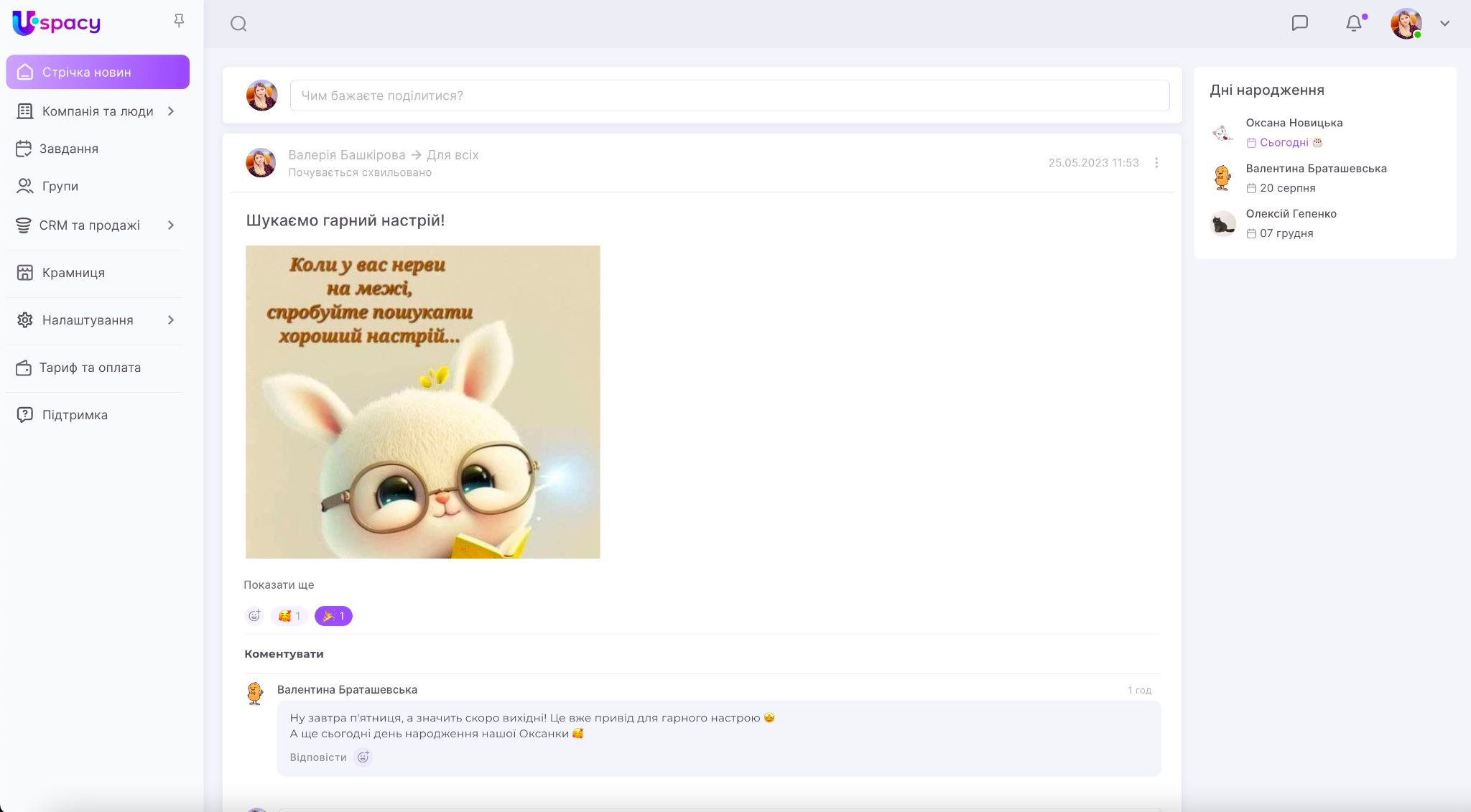 Крім того, у Лівому меню міститься посилання на перехід до сайту підтримки Uspacy.