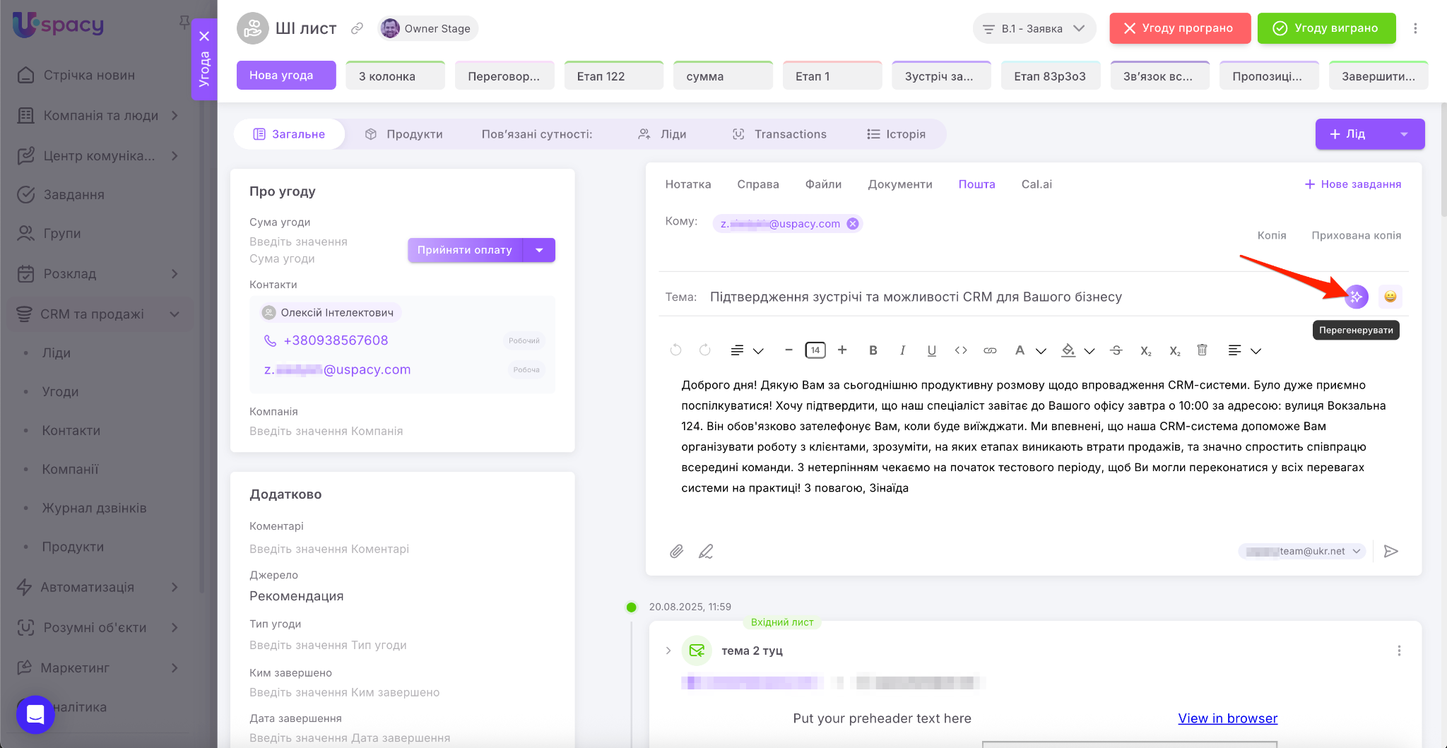 🟣 Текст та тема листа створюється автоматично за допомогою AI на основі запису дзвінка.