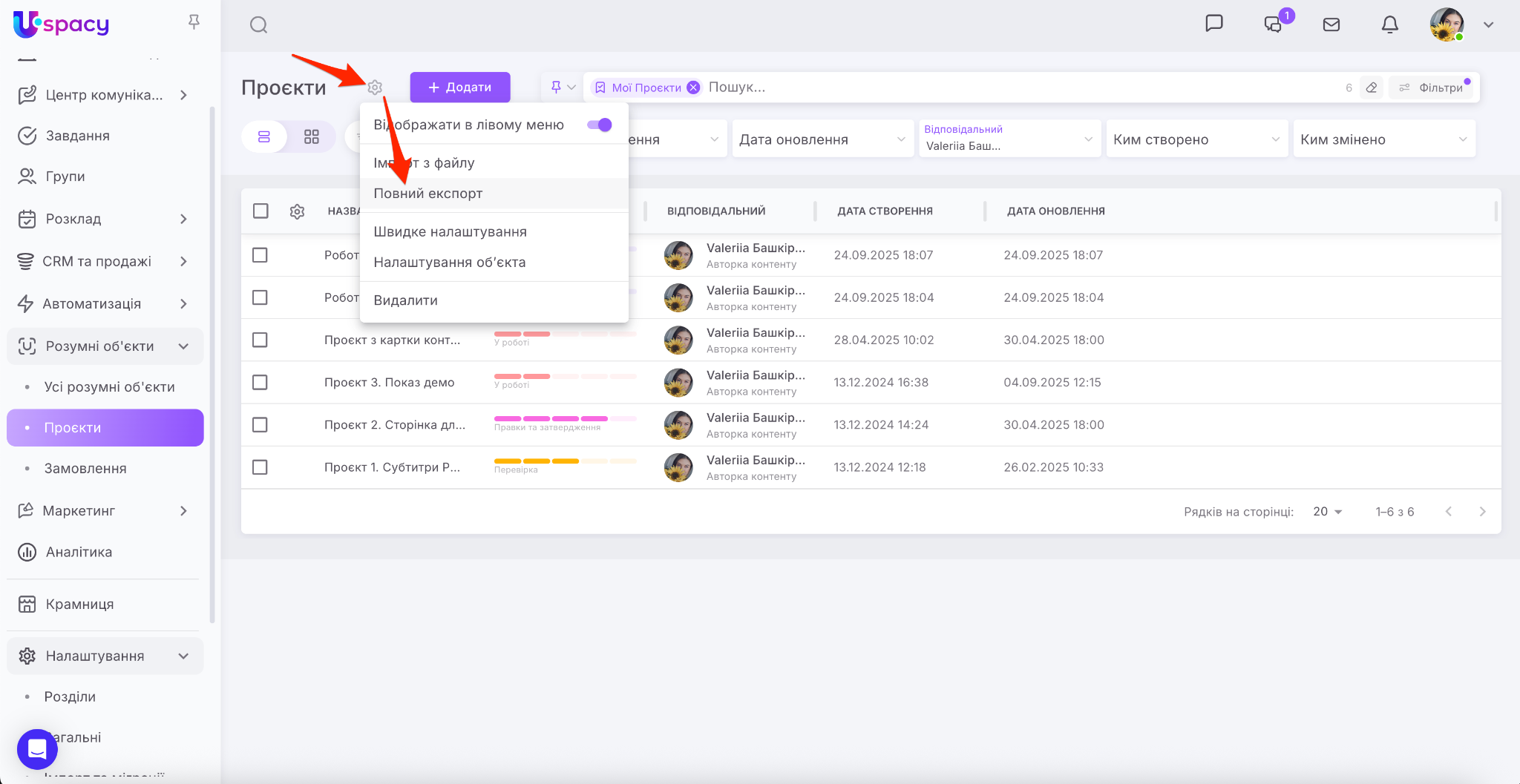 🔍 Експорт у Розумних об’єктах працює аналогічно експорту в CRM. Тому радимо ознайомитися зі статтею на цю тему.