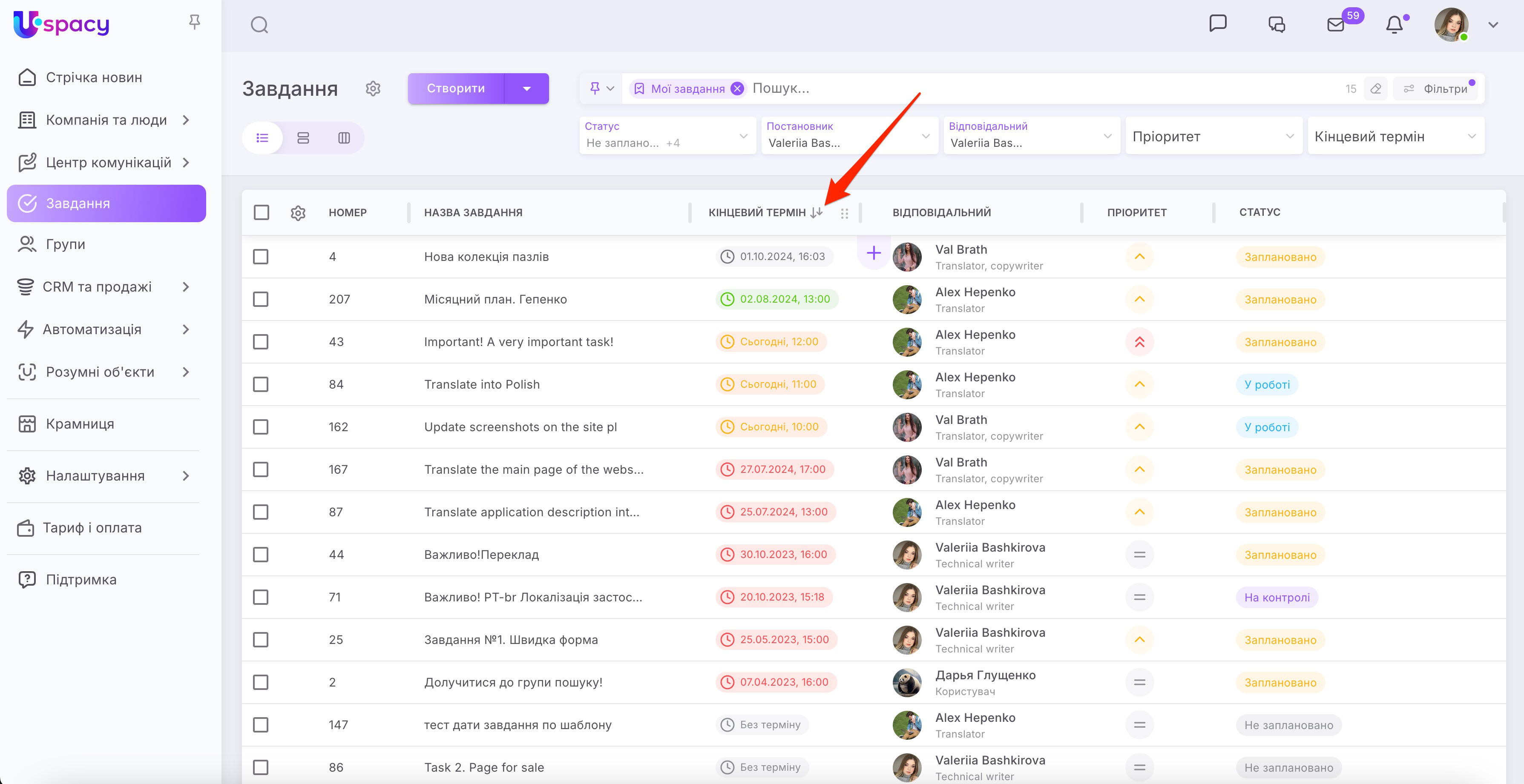 🟣 Сортування в таблиці нарешті дісталось Завдань. Тепер легко розташувати завдання у списку за номером, терміном чи їх назвою.