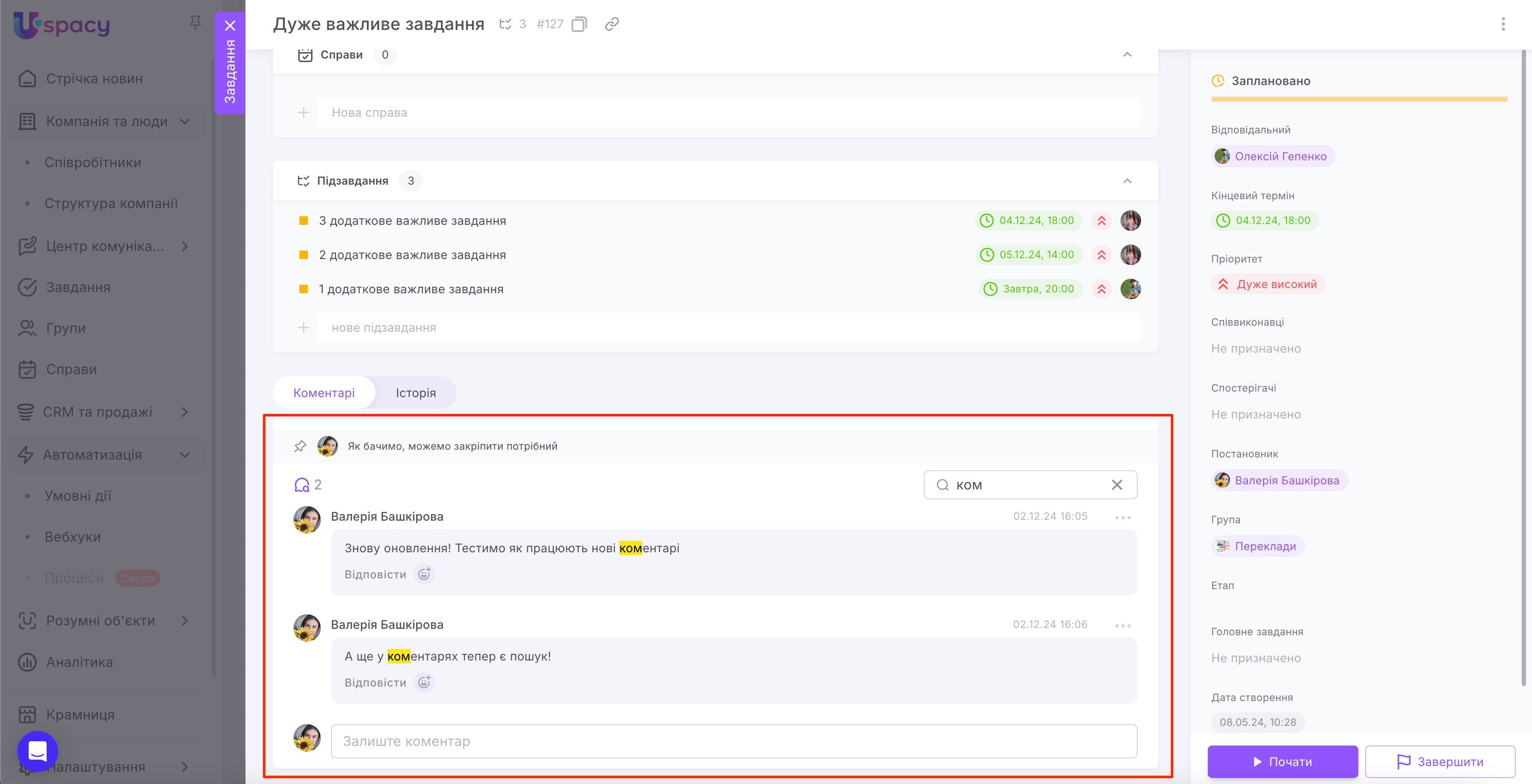 🟣 Велике оновлення спіткало й сервіс коментарів до дописів або завдань. Тепер можна закріплювати важливі коментарі, переходити до них, шукати текст за частковим або повним співпадінням тощо. І це окрім їх оновленого дизайну!