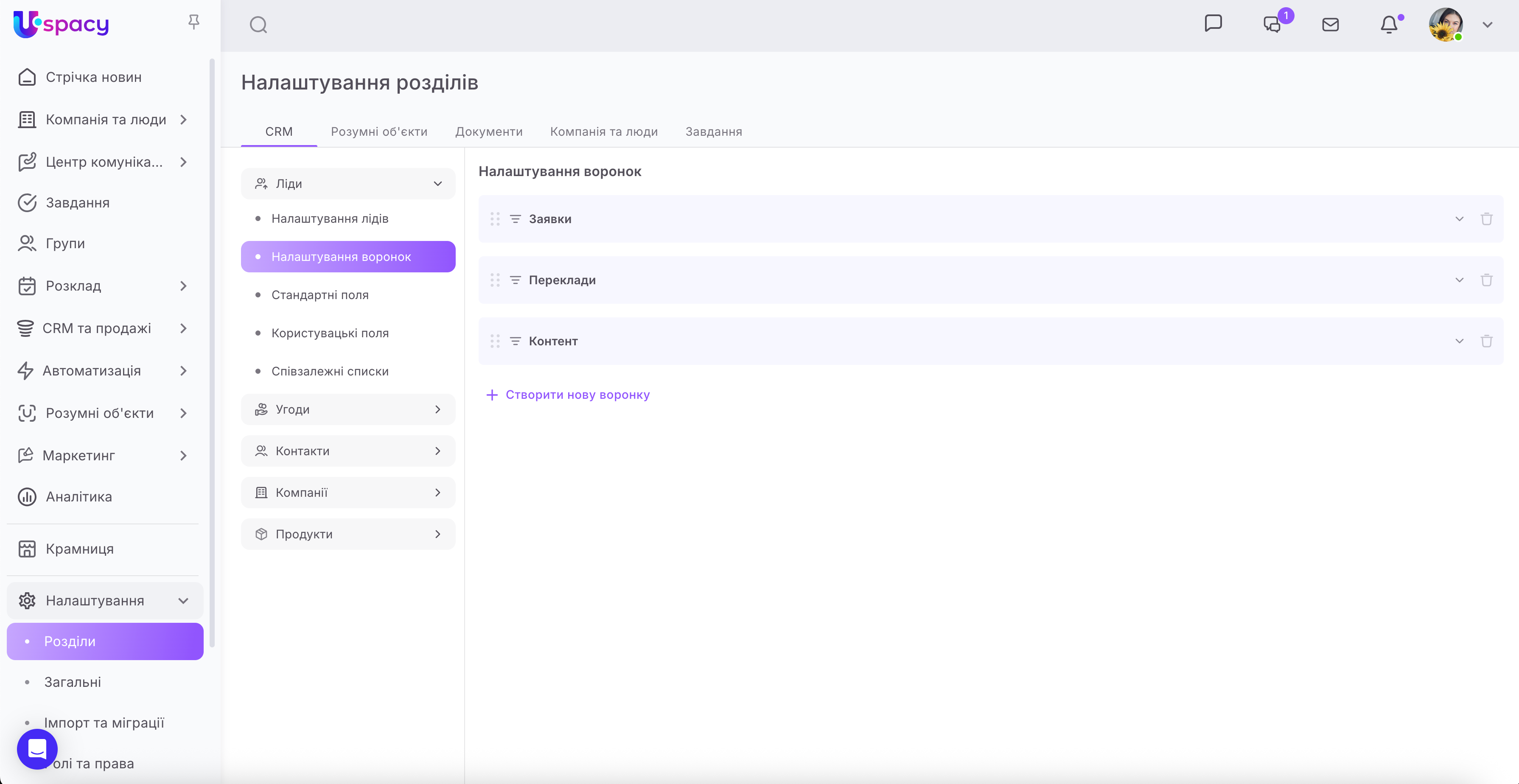 🟣 Можливість налаштувати окремі представлення таблиці для кожної воронки — гнучкий інструмент для роботи з різними процесами продажів. Відтепер в лідах, угодах та розумних об'єктах можна створити унікальні представлення таблиці для кожної воронки окремо, показуючи лише релевантні поля для конкретного бізнес-процесу.