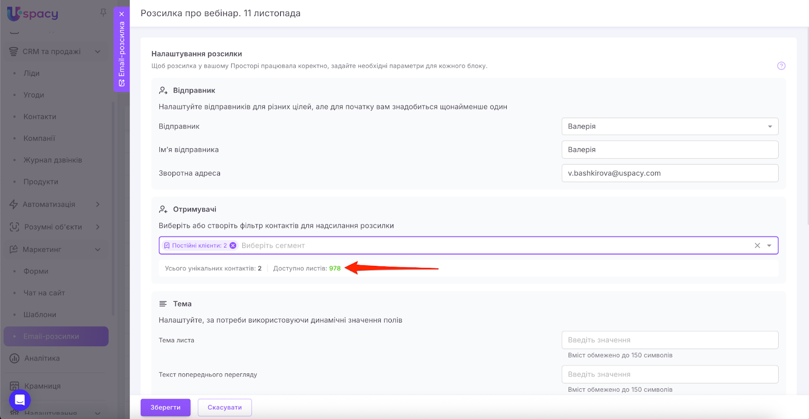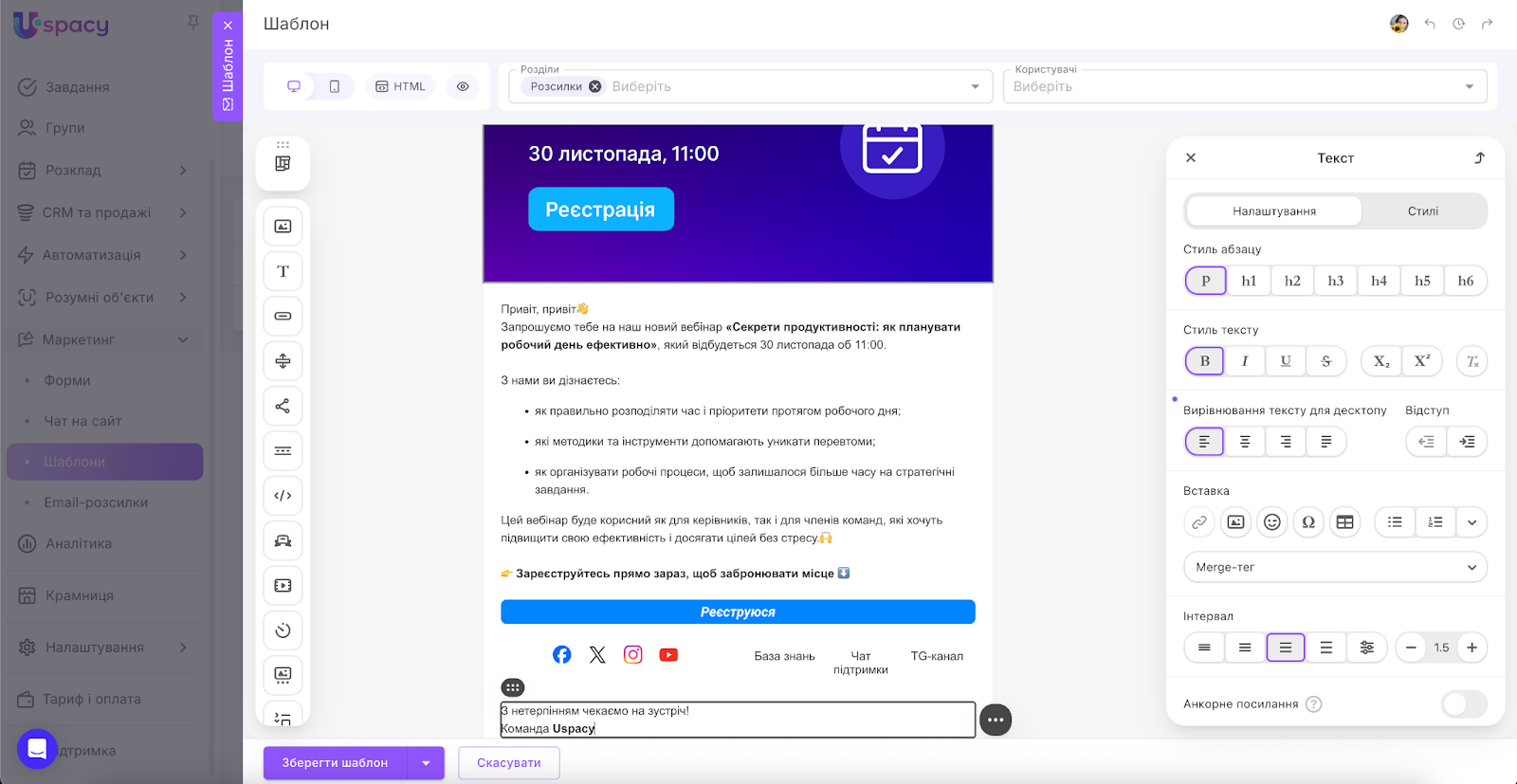 🔍 Детальніше про весь функціонал розсилок у Uspacy можна прочитати в окремому розділі.