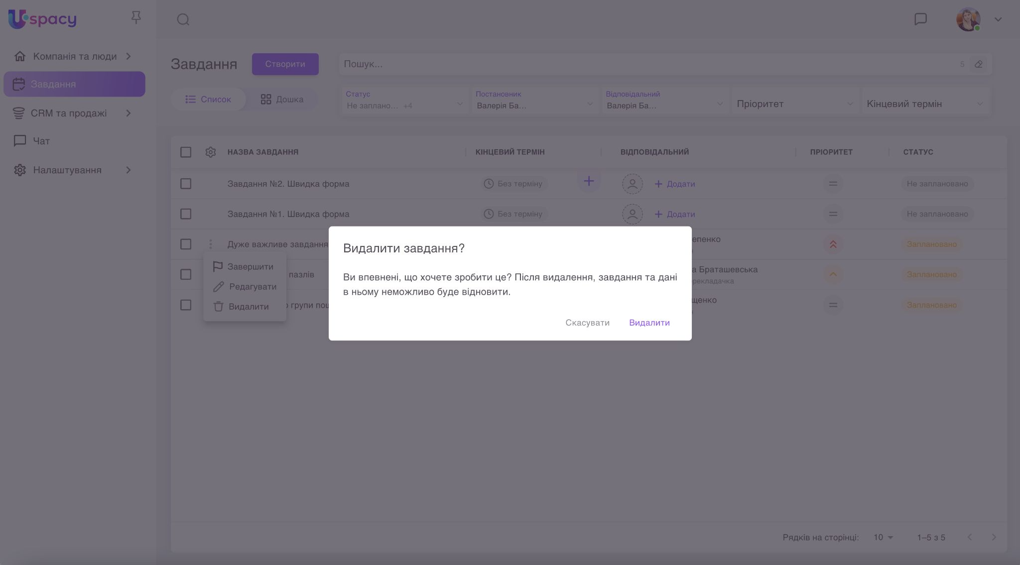 ☝🏻 Зверніть увагу! Відновити видалене завдання та дані в ньому буде неможливо.