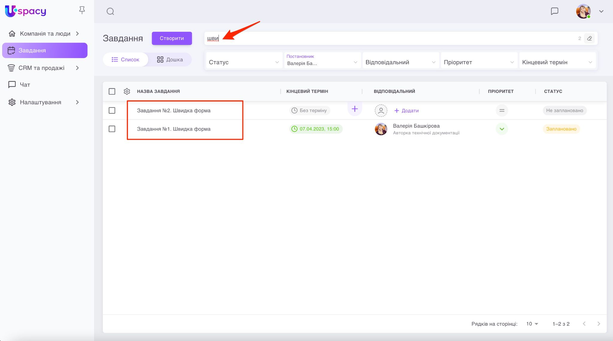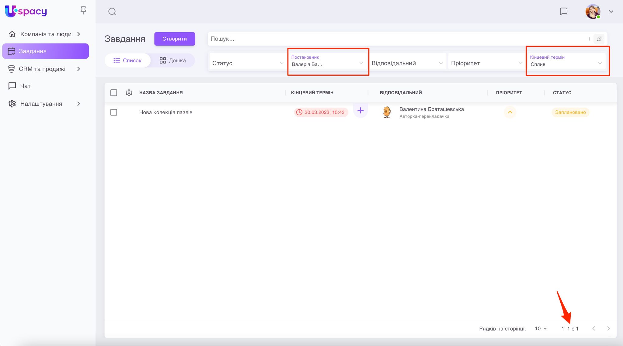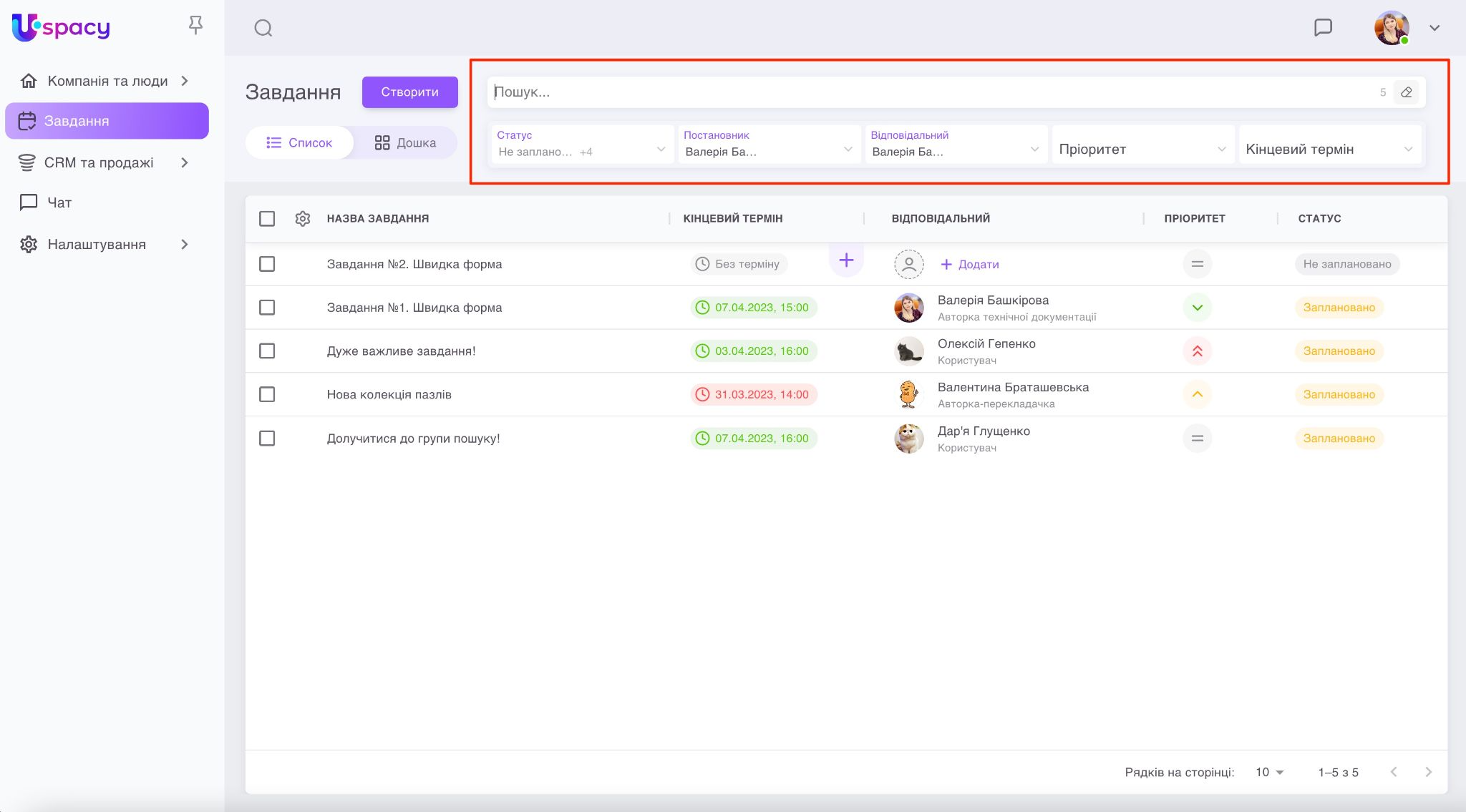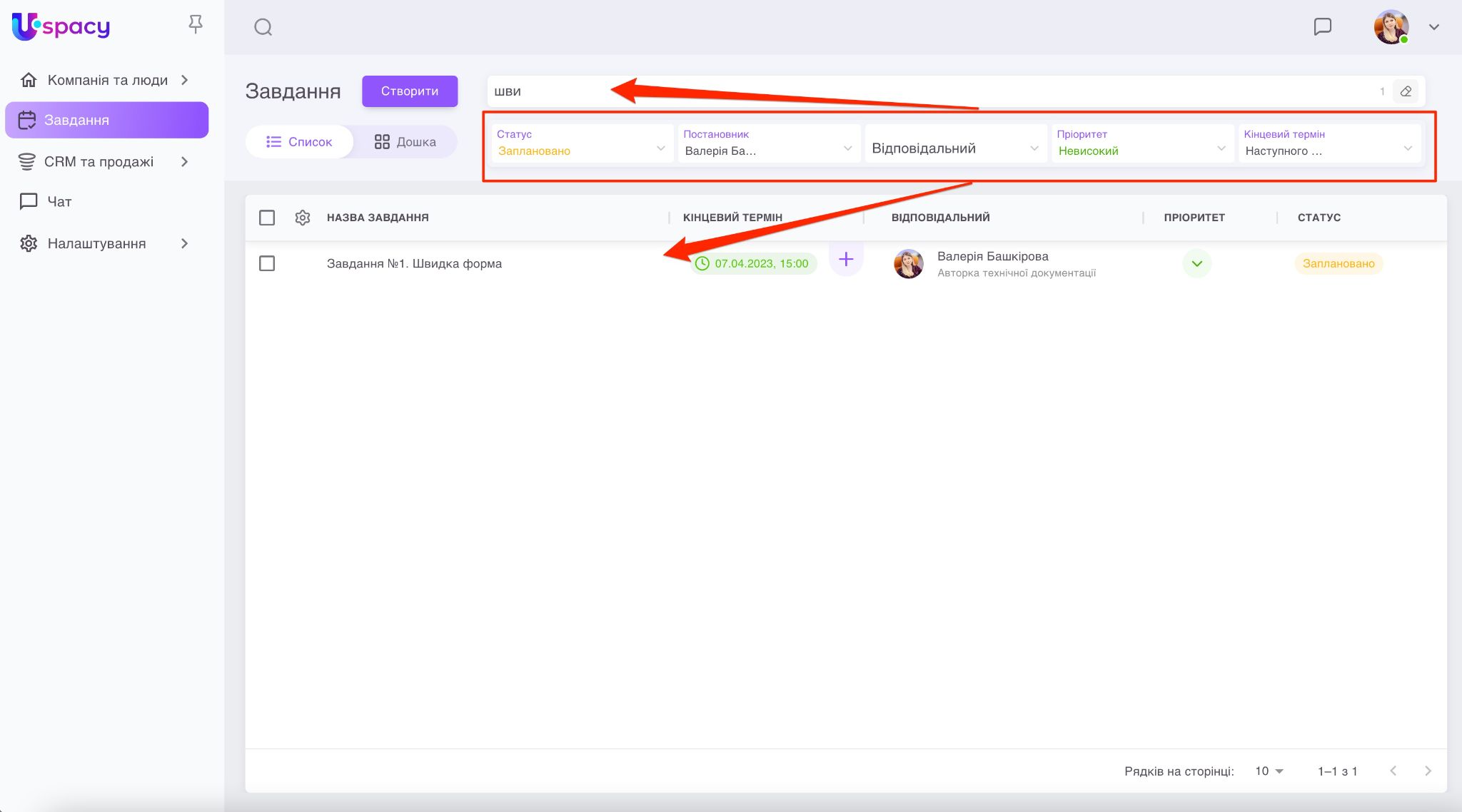 🔍 Детальніше про роботу фільтрів і пошуку в завданнях можна прочитати в окремій статті. Вона буде скоро доступна за цим посиланням.