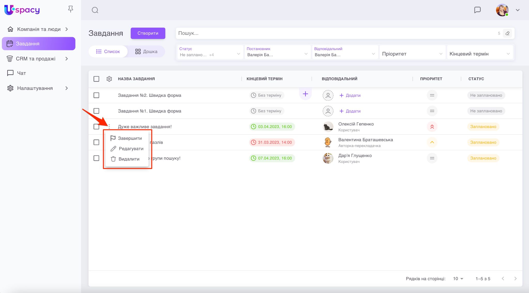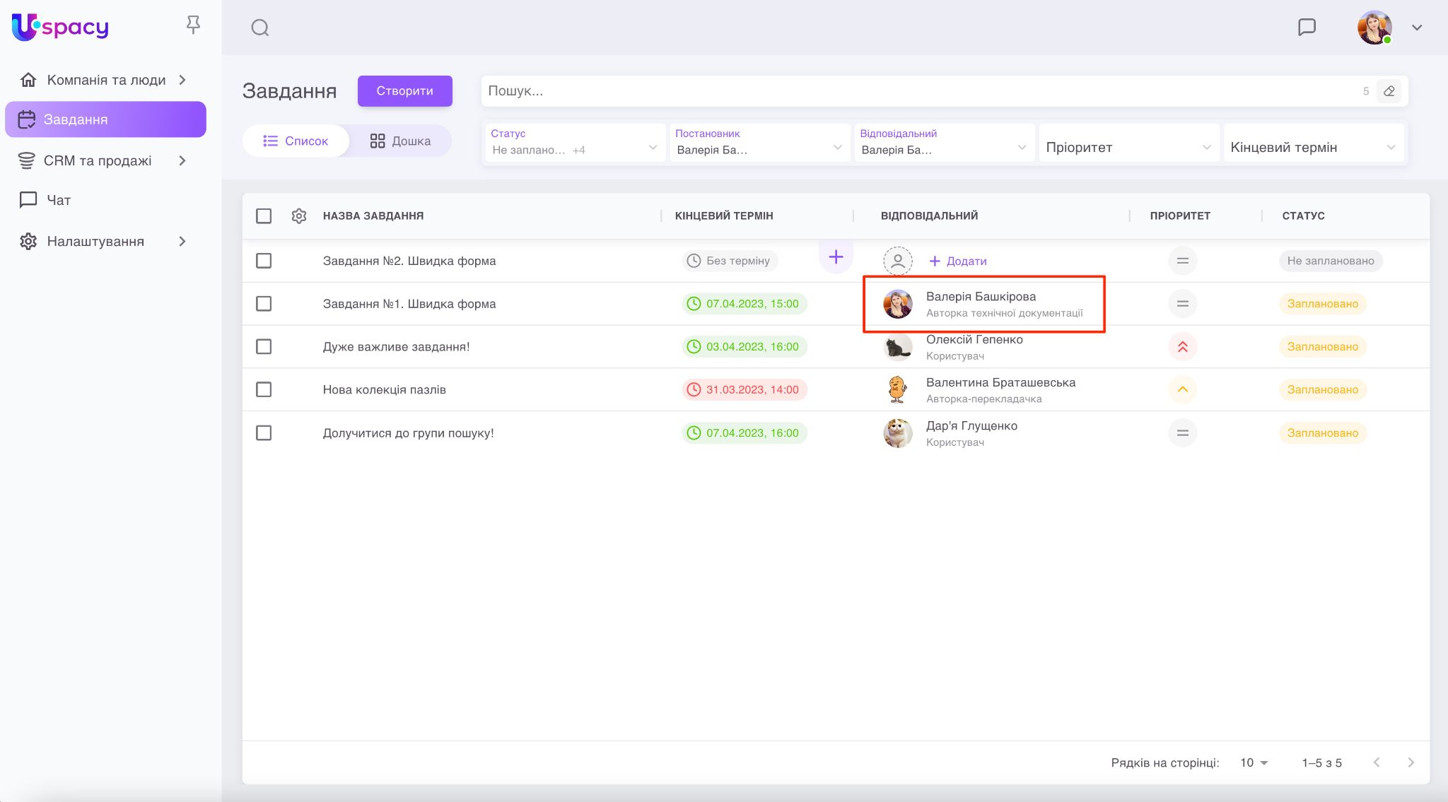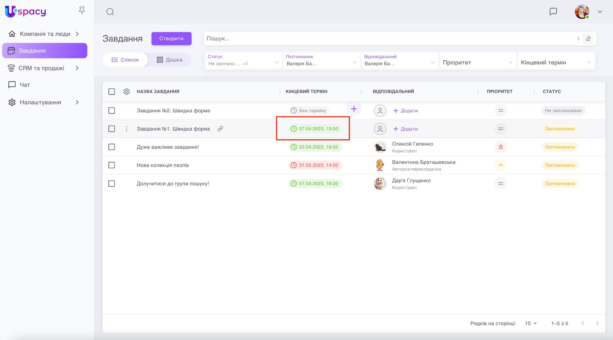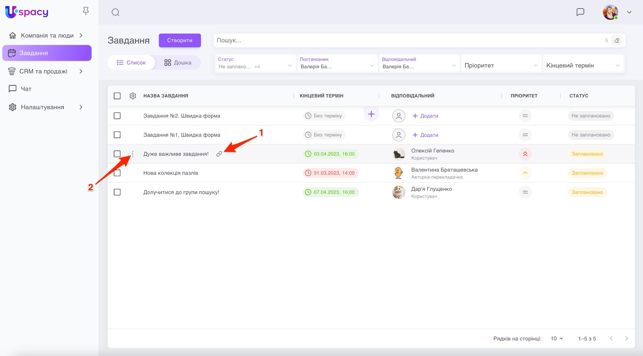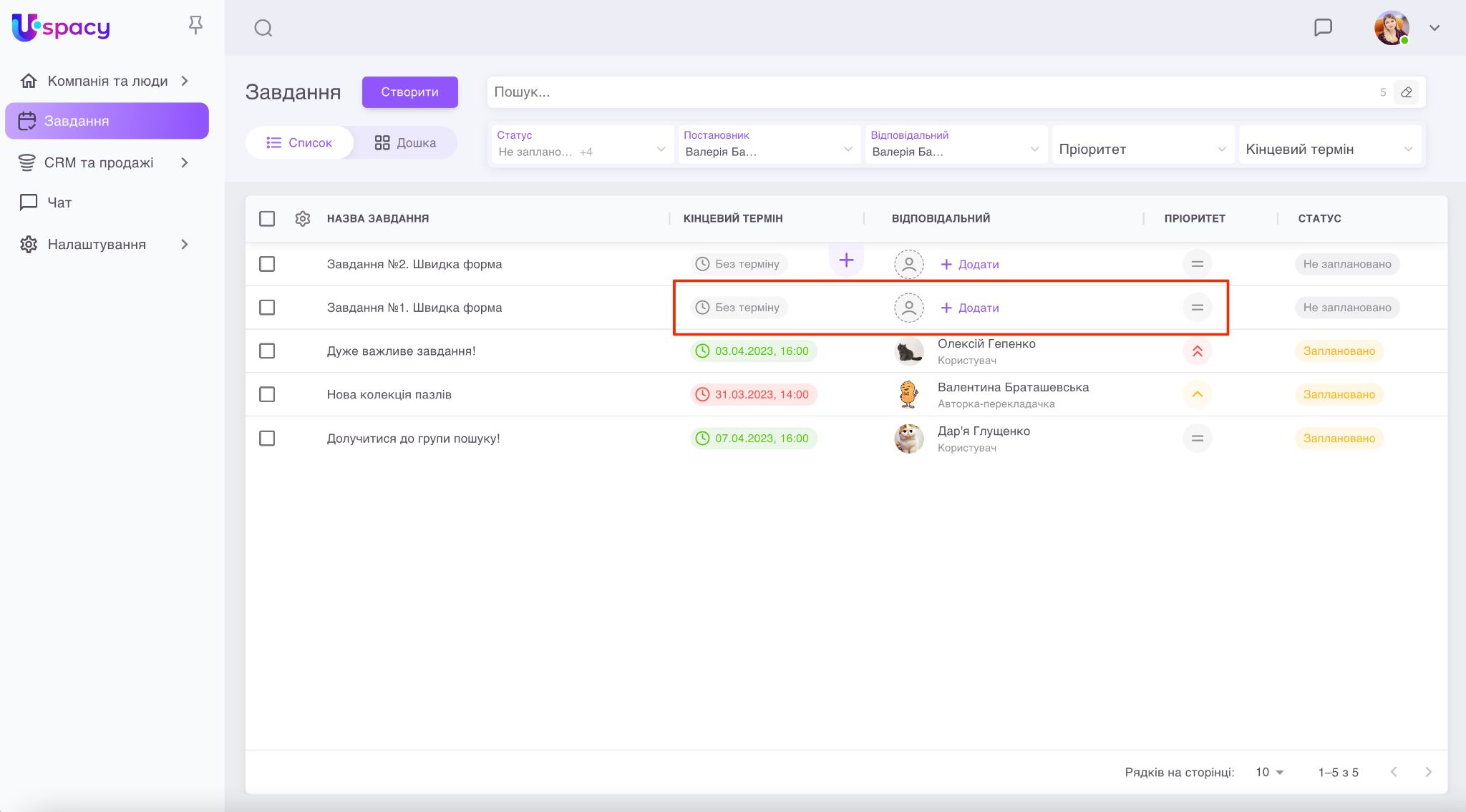 🔍 Детальніше про роботу фільтрів і пошуку в завданнях можна прочитати в окремій статті. Вона буде скоро доступна за цим посиланням.