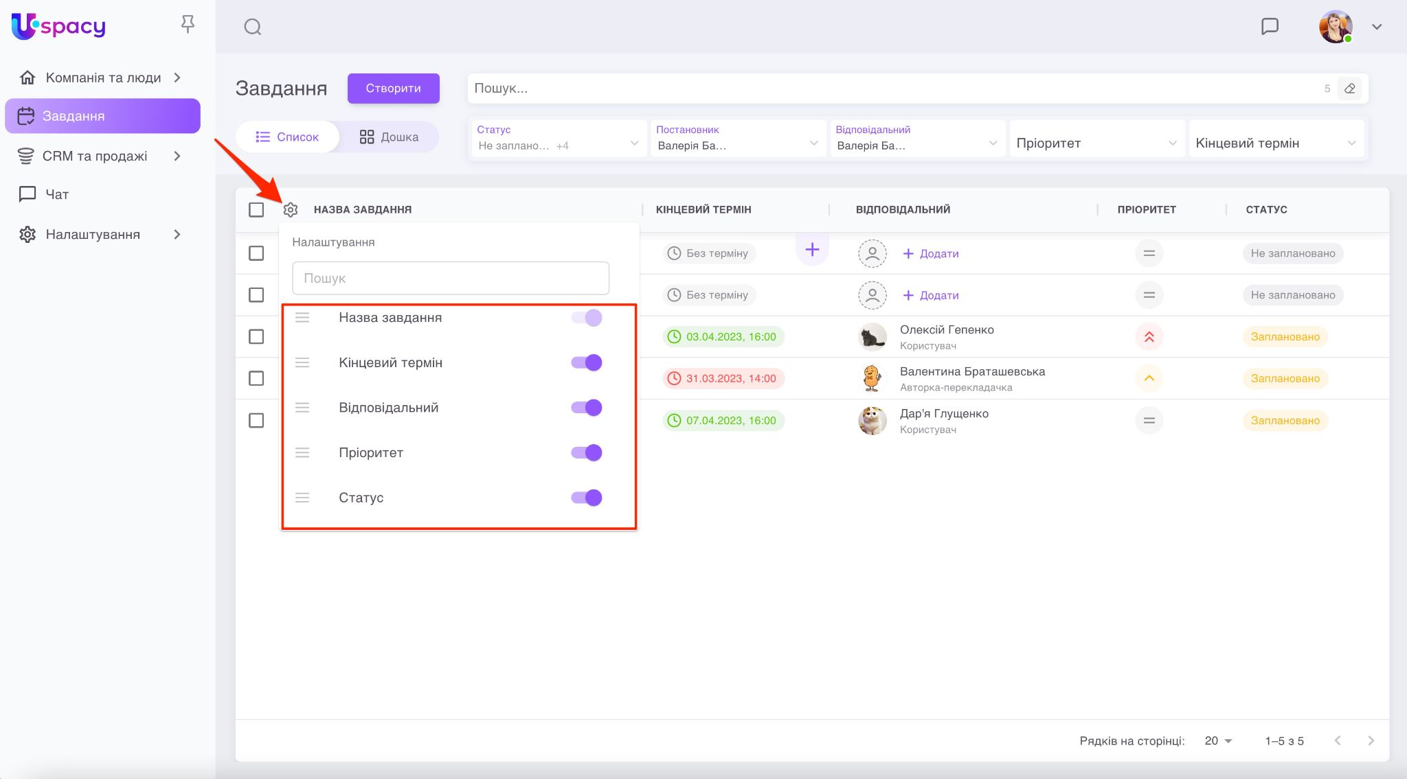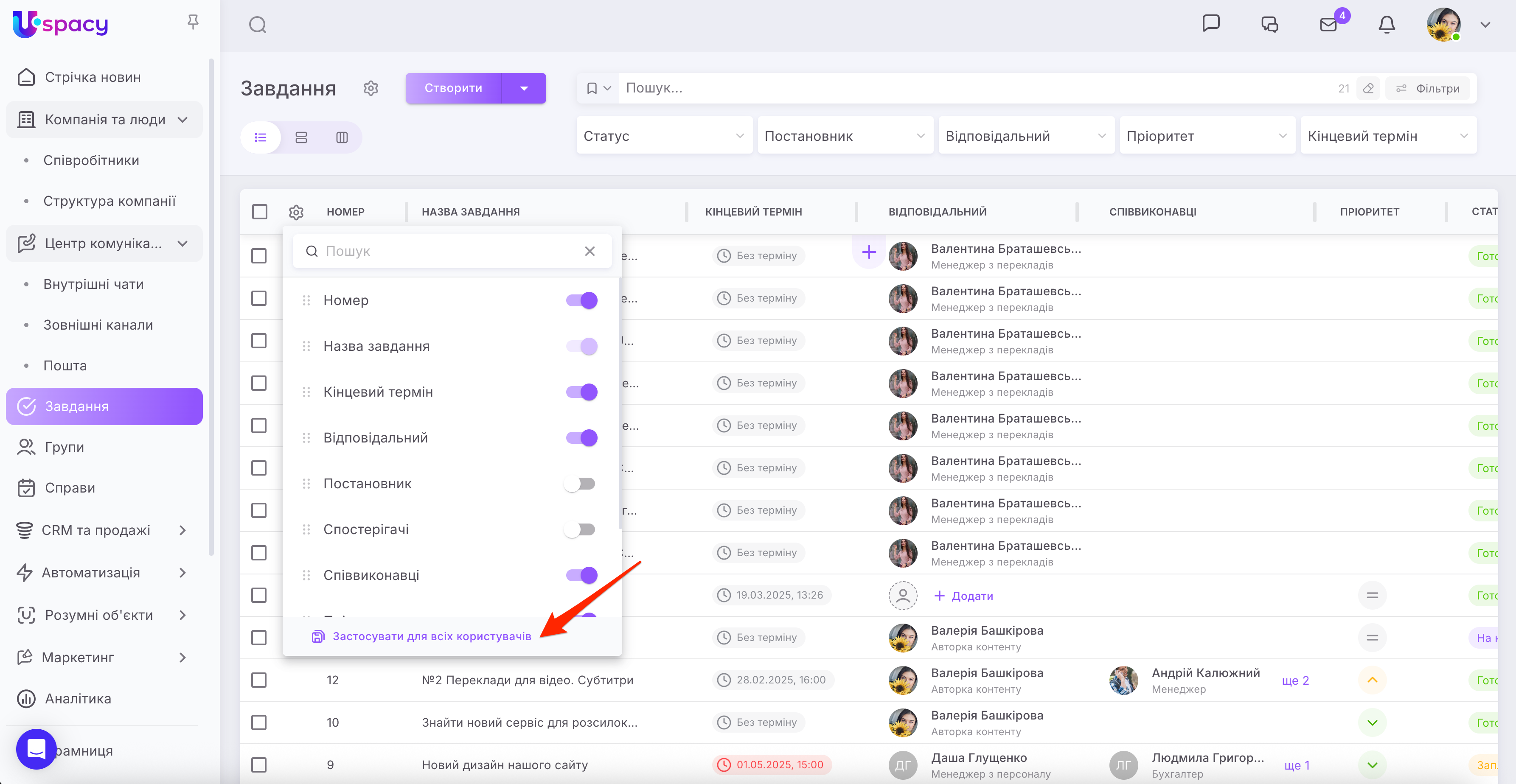🌟 Можливість налаштовувати колонки для списку завдань доступна лише на комерційних тарифах. Детальніше про можливості тарифних планів можна ознайомитися на окремій сторінці