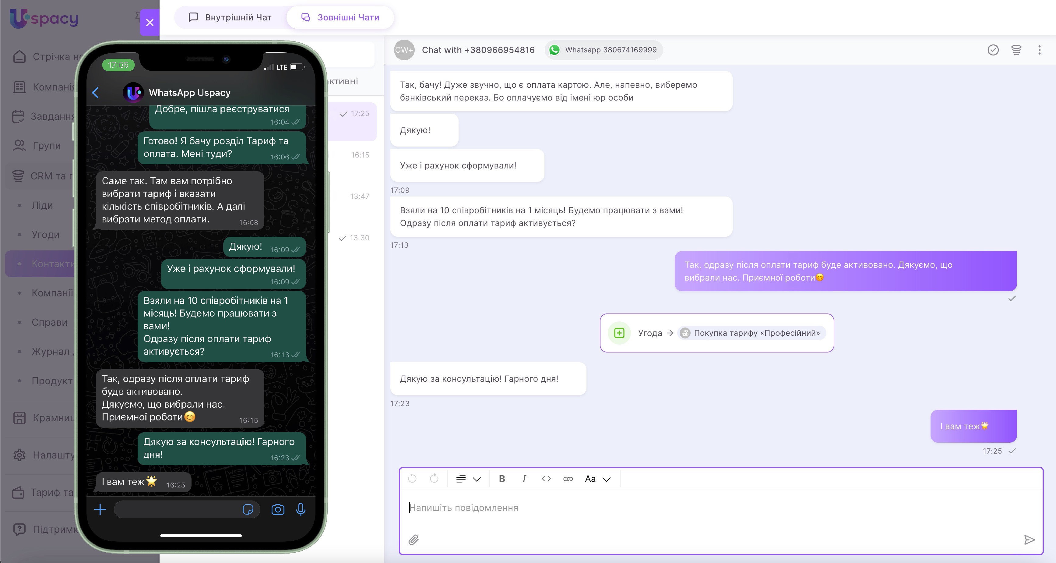 Окрім можливості спілкування та консультування клієнтів у чатах, зовнішні лінії допомагають пов’язати звернення та продажі. А саме забезпечують доступ до вашої CRM одразу у вікні активного діалогу.