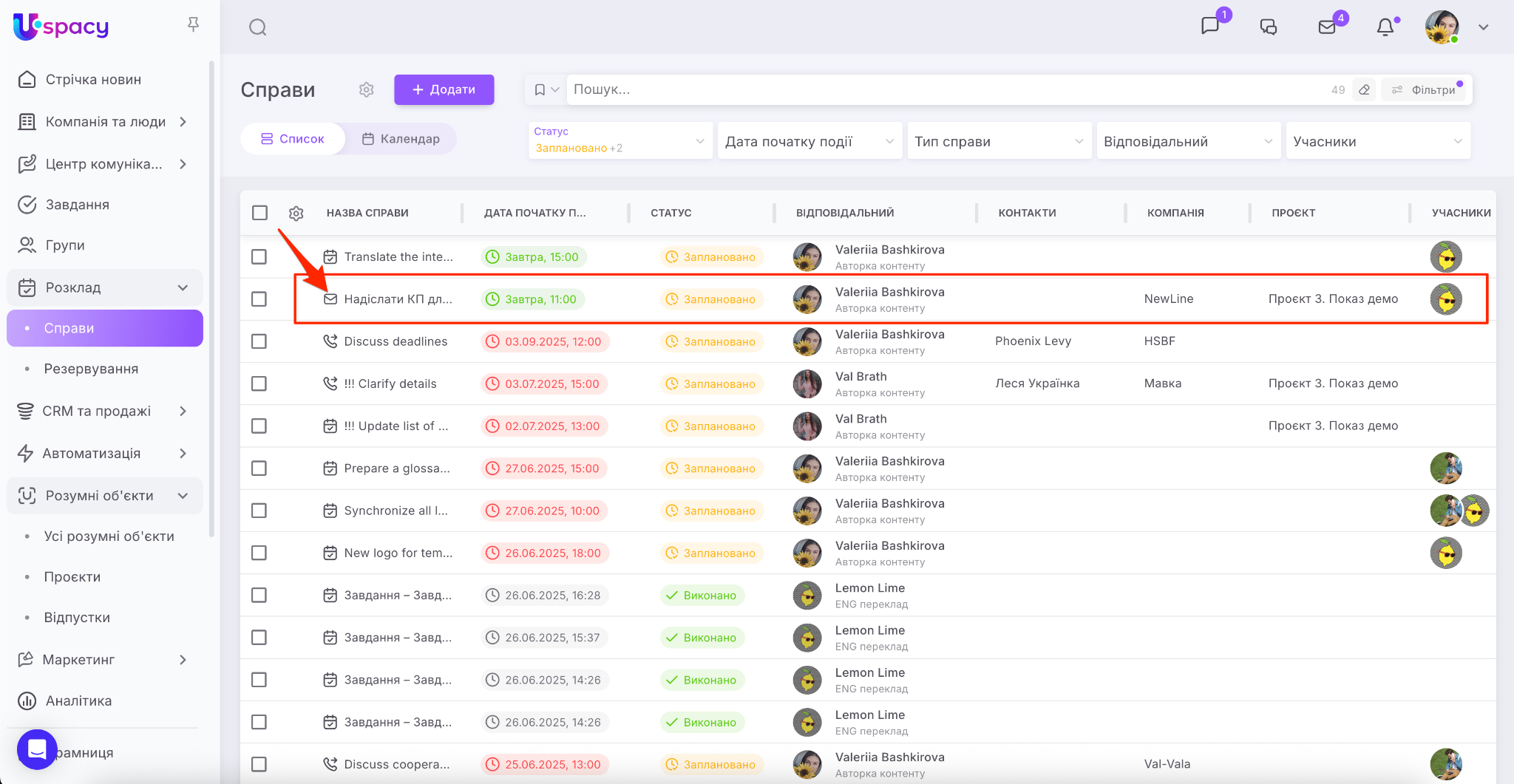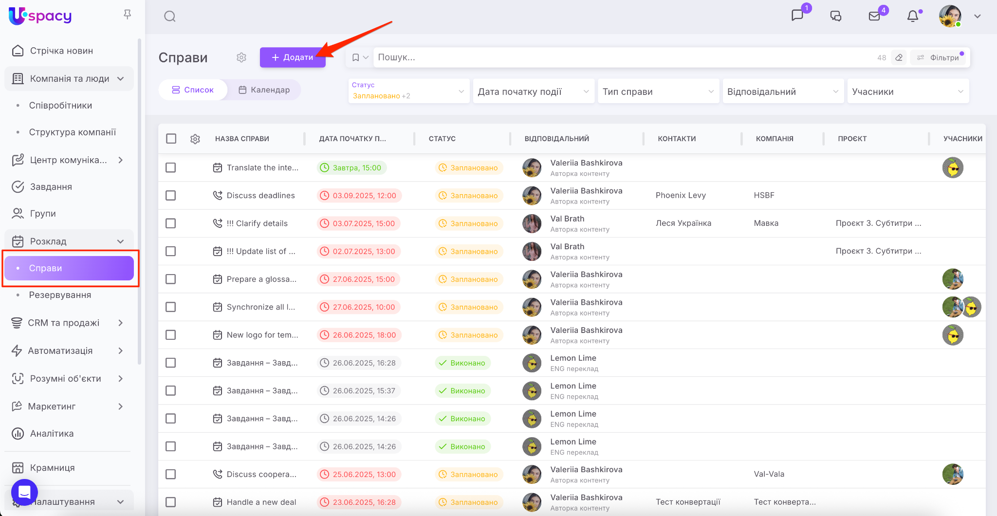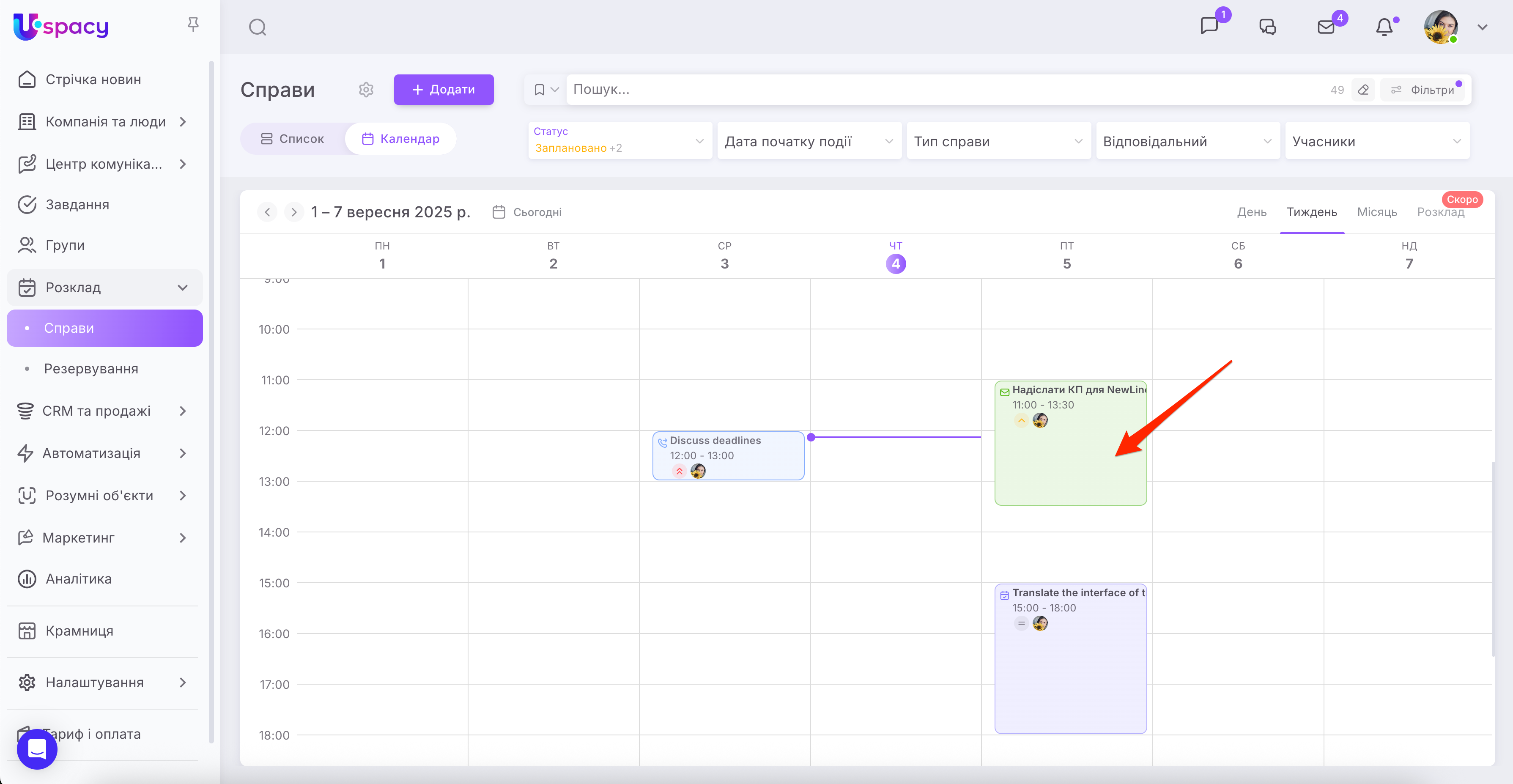 Важливо: відповідно до оновлень, Справи в Uspacy були перенесені у розділ Розклад. А також для них тепер доступні розширені фільтри.