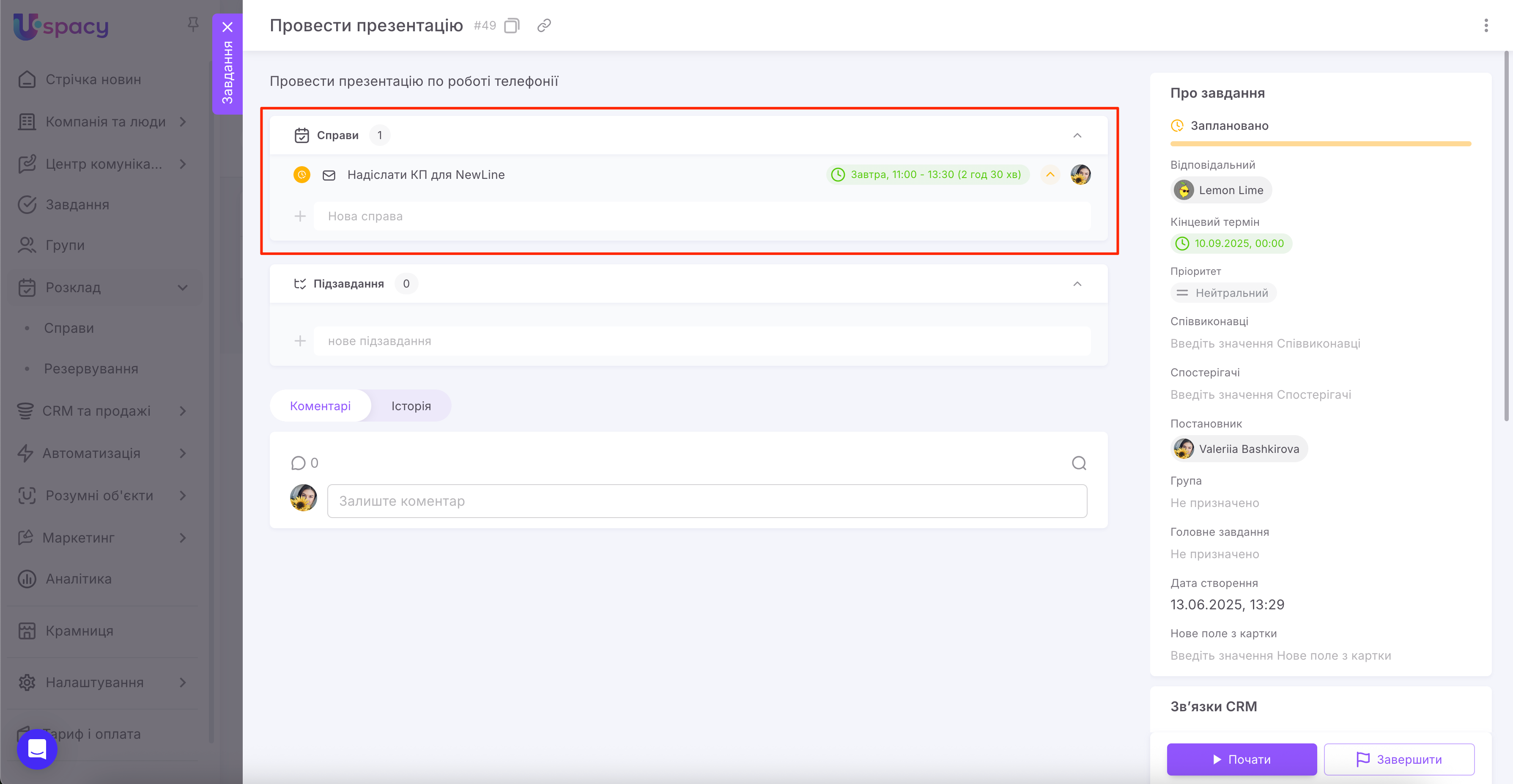 🔍 Детальніше про планування справ в картках CRM і розумних об'єктів можна прочитати в окремій статті.