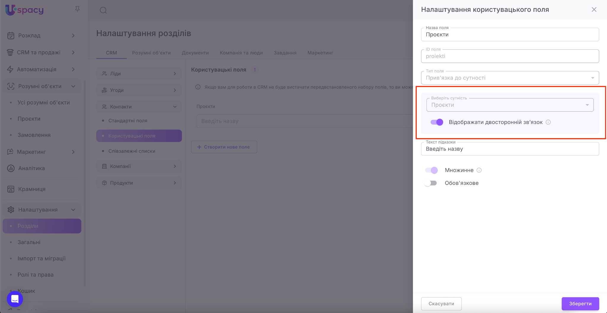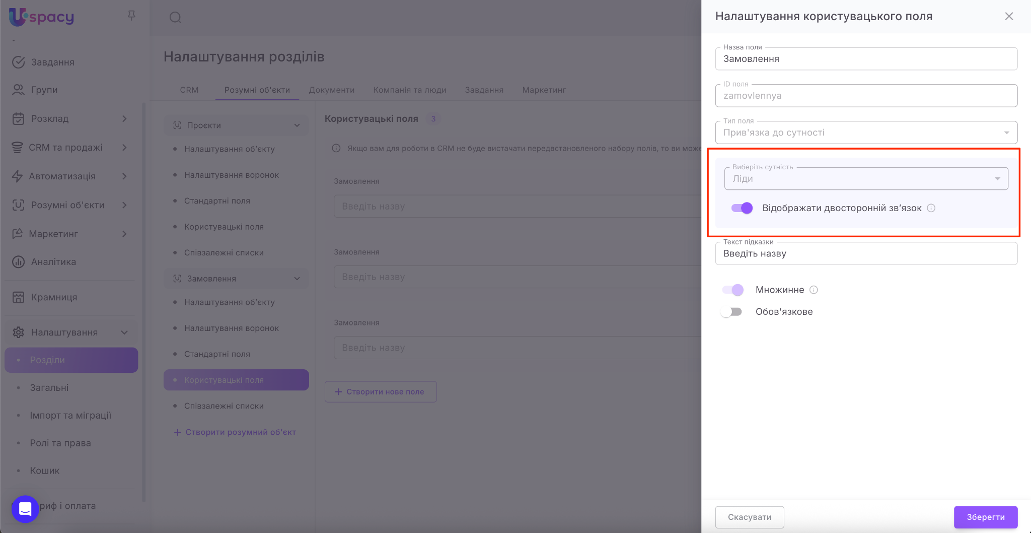 🟣 Для ліда – лише елементи власного РО, якщо в цьому РО було створено відповідне поле з відображенням двостороннього зв’язку.