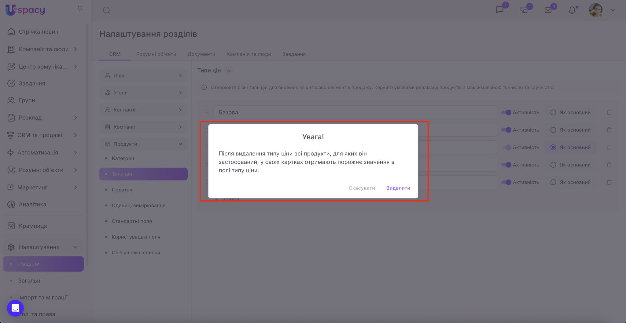 💡Зверніть увагу, що якщо тип ціни встановлений як основний, то видалити його не можна.