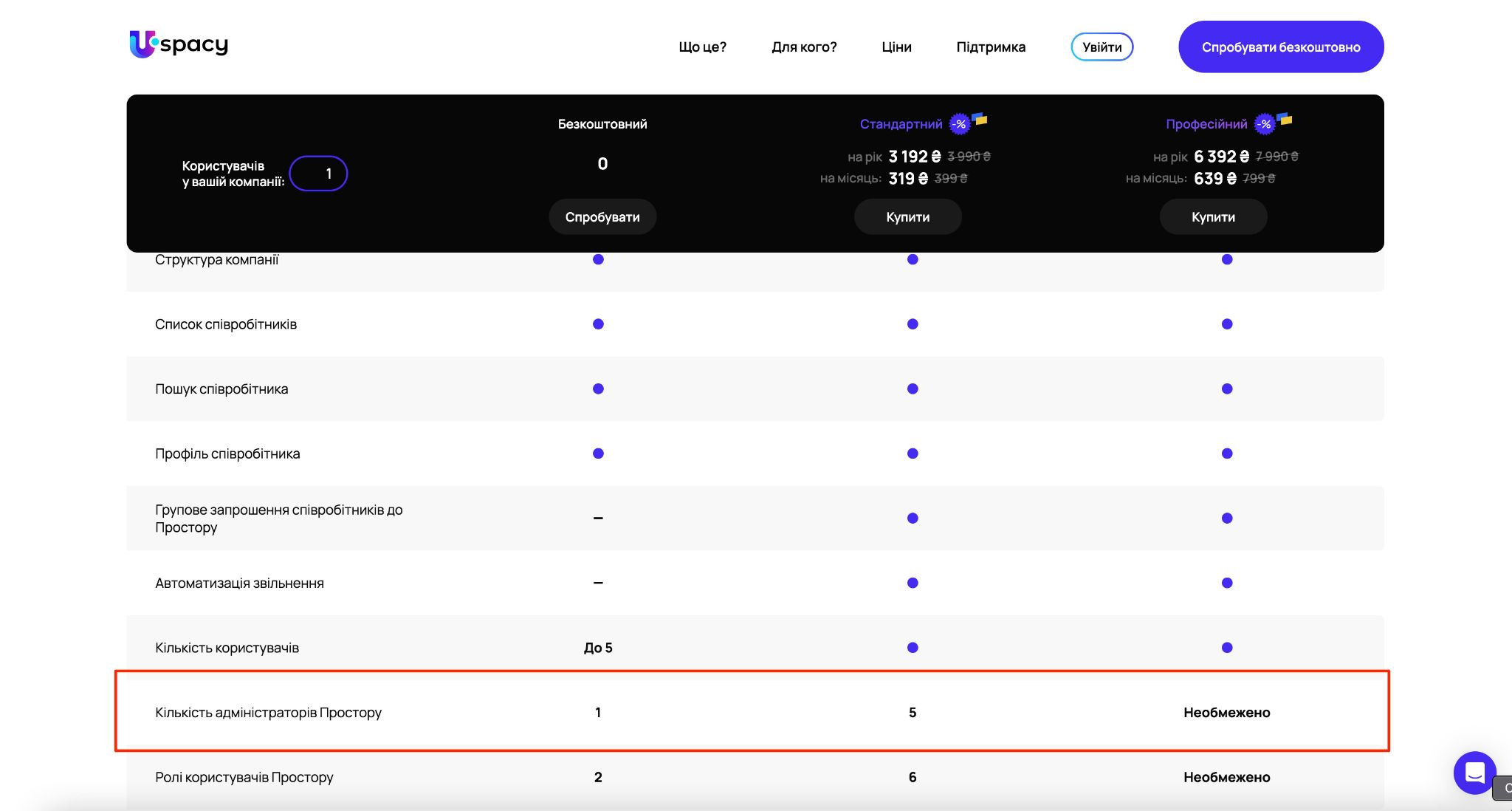💡 Зверніть увагу, що можлива кількість адміністраторів Простору залежить від тарифу.