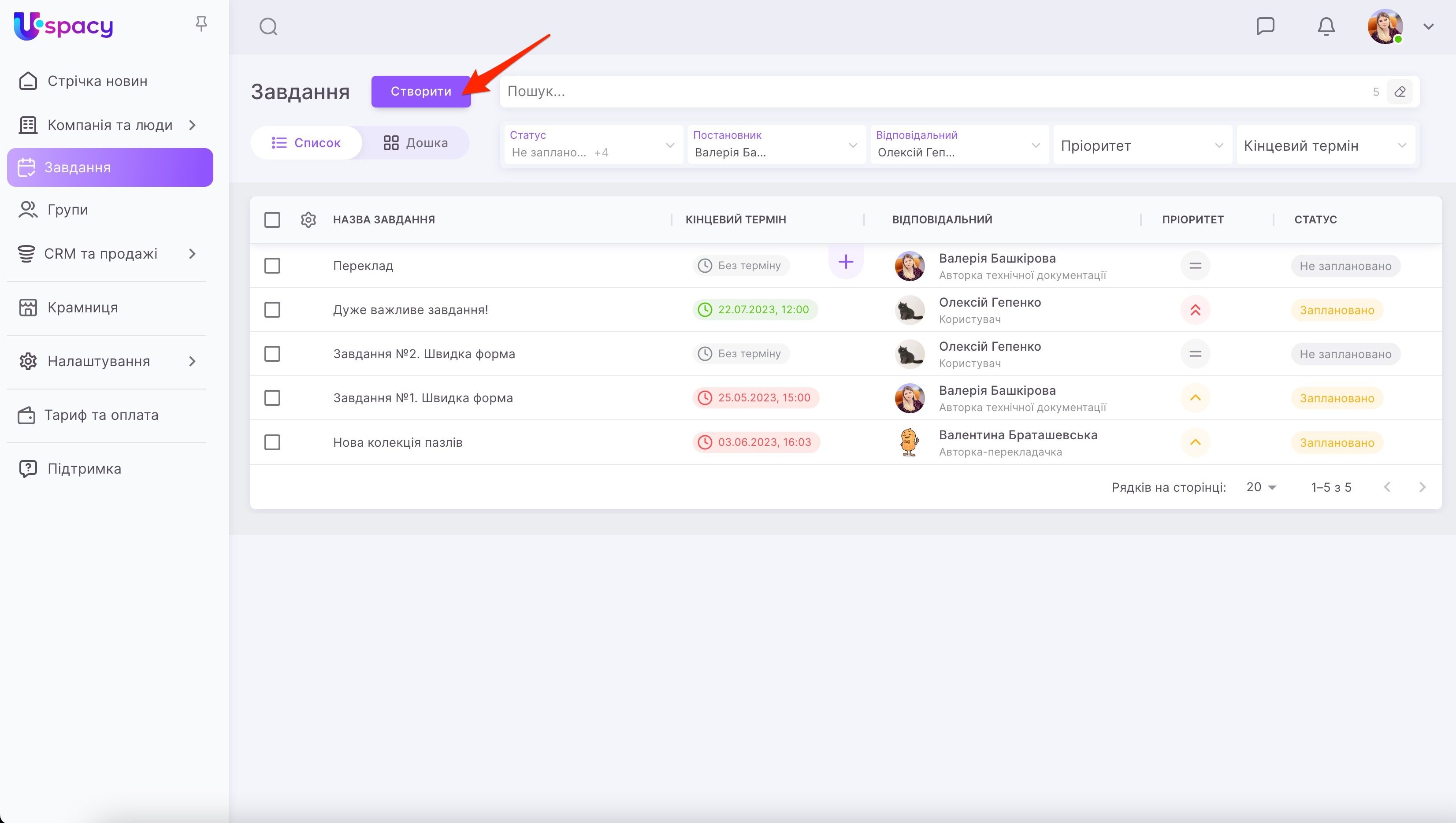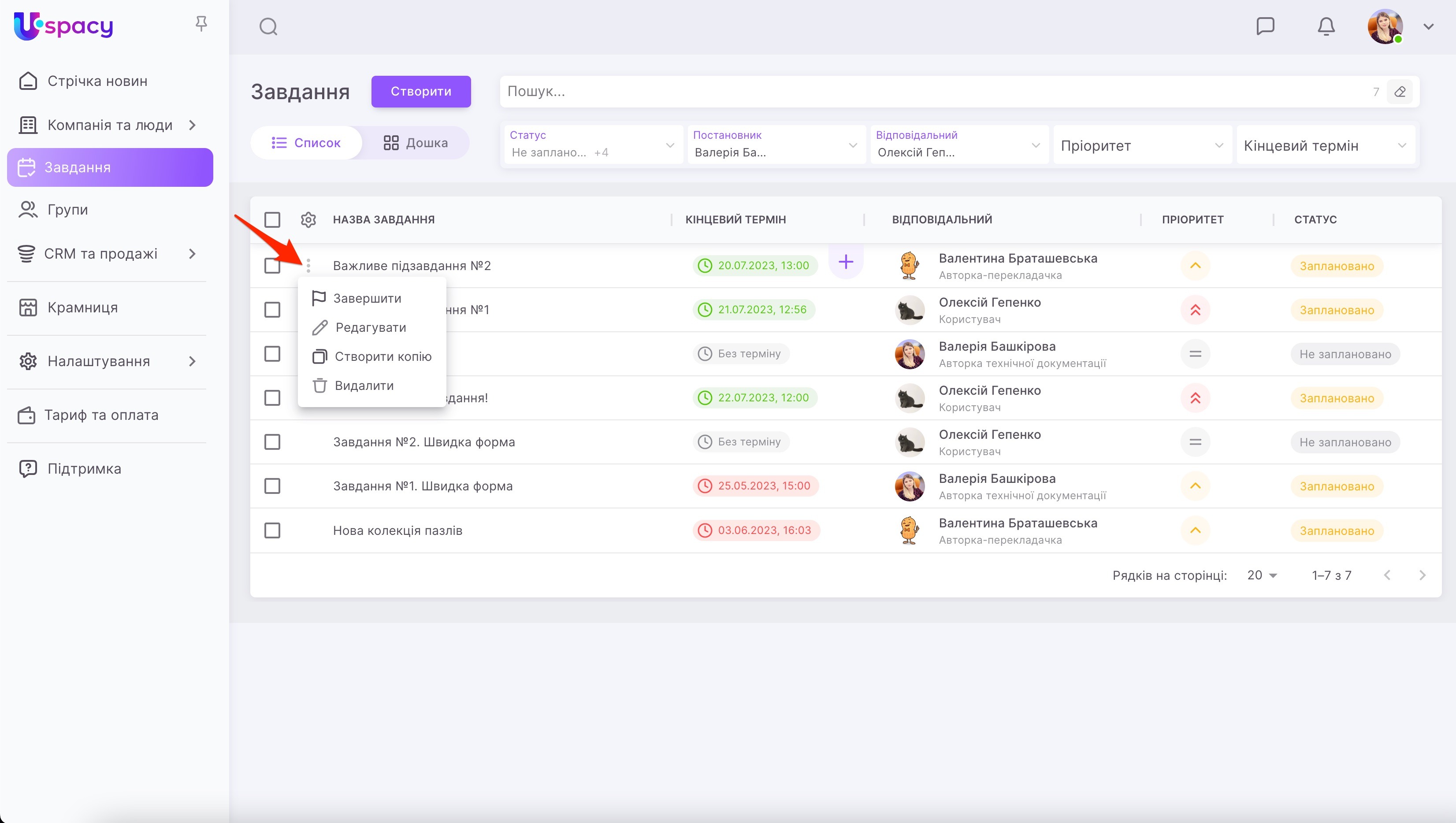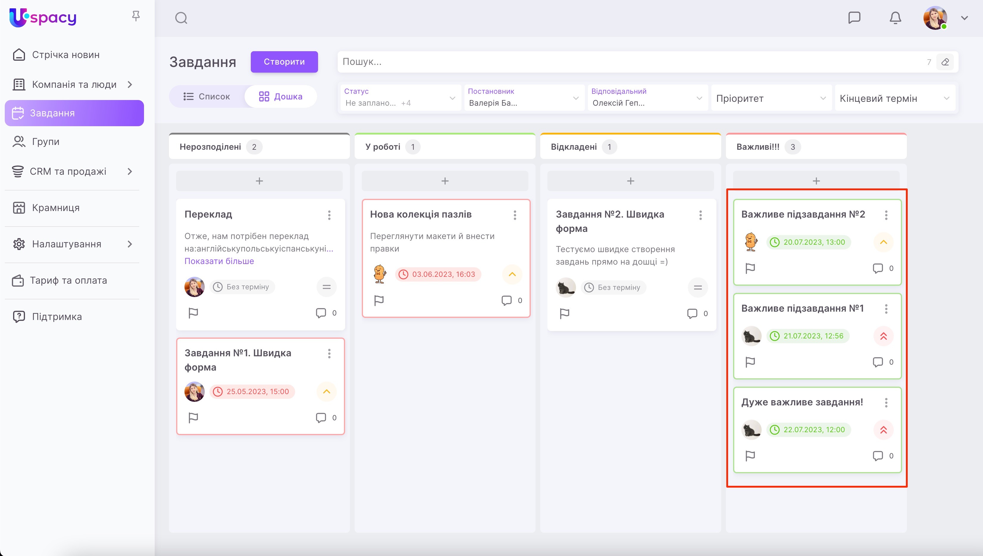 У Uspacy можна пов’язувати завдання між собою. Визначати головне та додавати для нього підзадання. Це може допомогти, наприклад, організувати роботу над великим і різноплановим проєктом, який потребує залучення співробітників із різних відділів.
