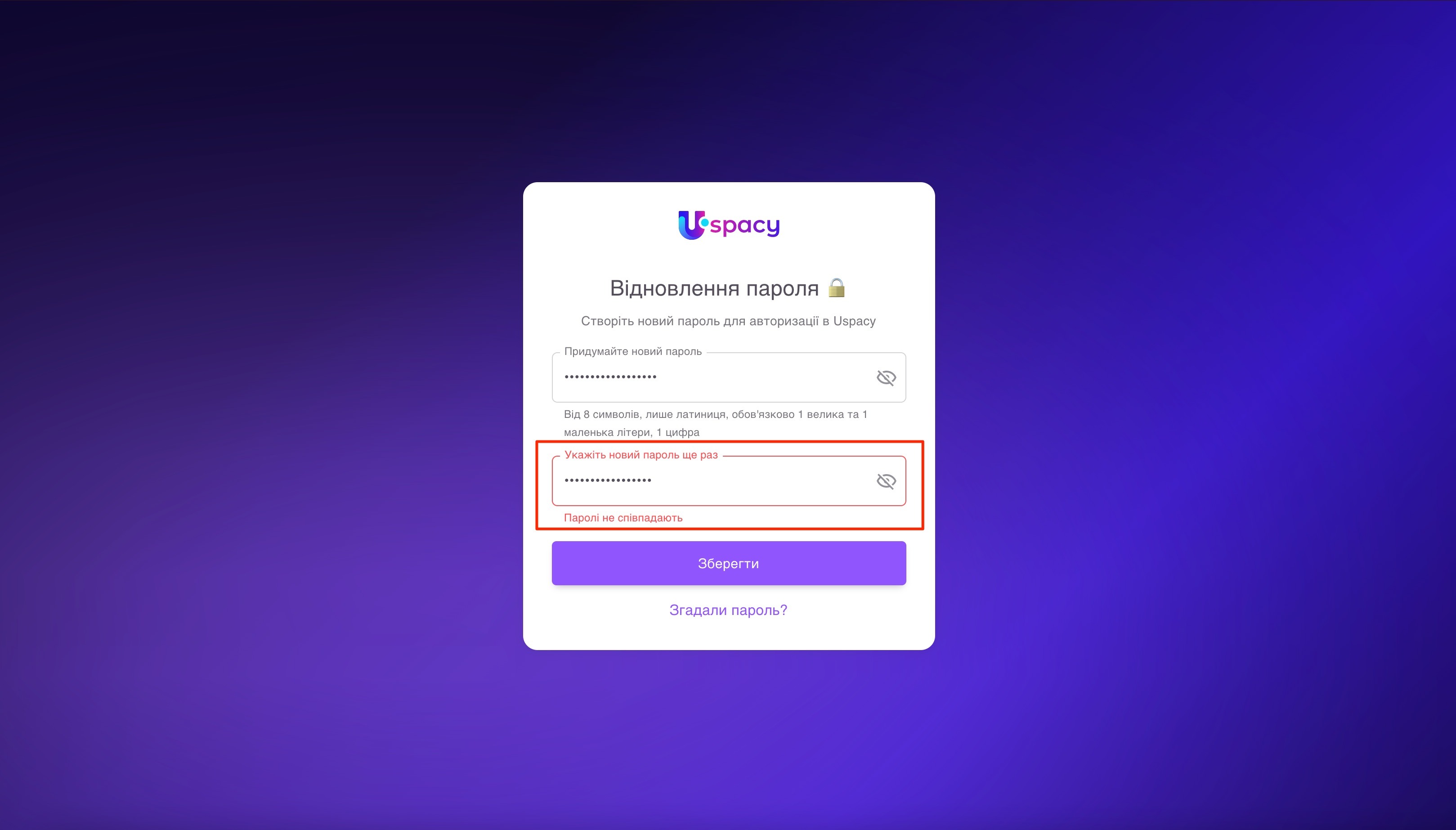 ❗️ Якщо паролі не будуть співпадати, то система повідомить про це.