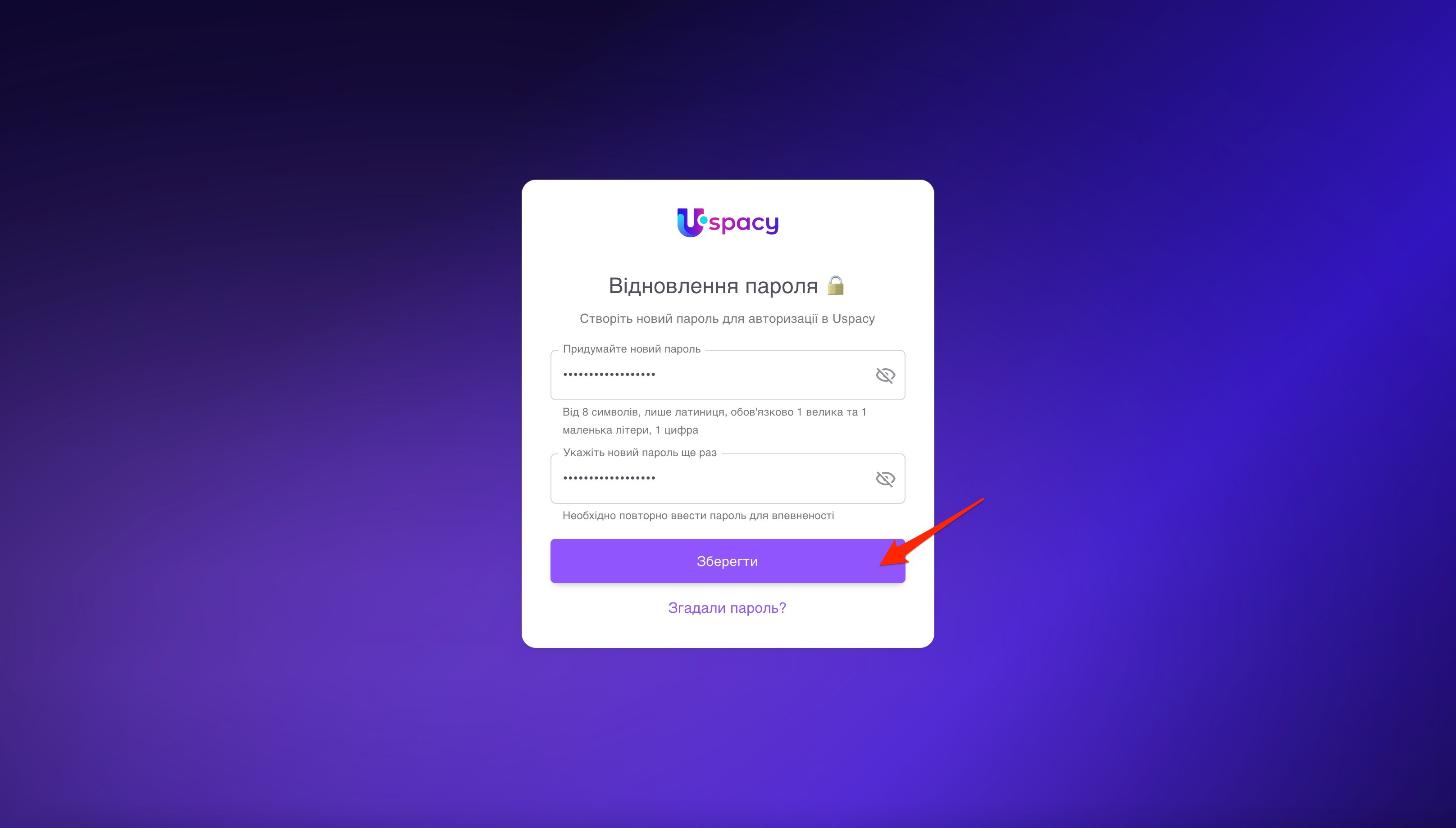 Відкриється сторінка з формою для створення нового пароля. Тут потрібно буде: