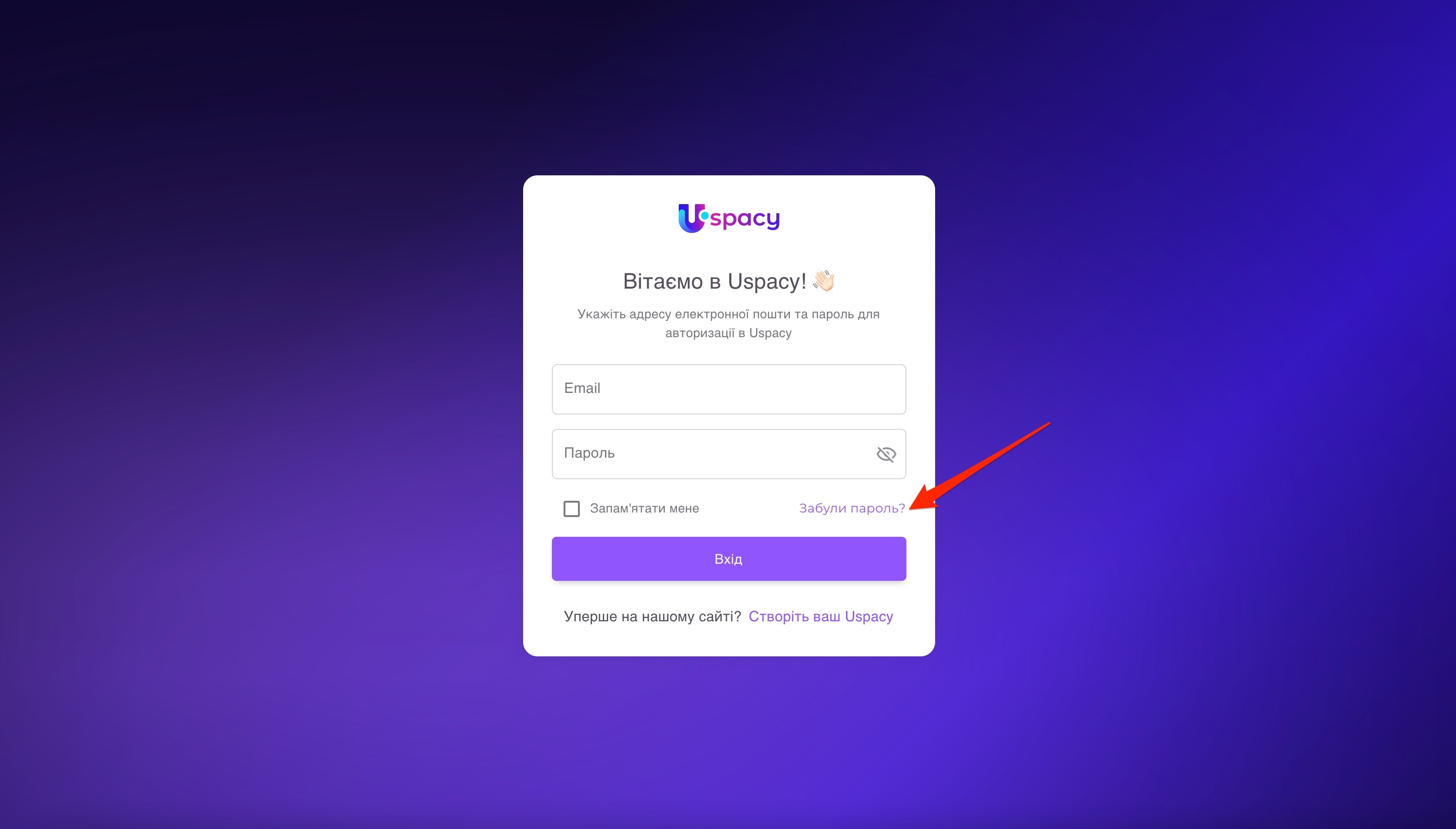 Ця дія перенаправить на сторінку авторизації, де можна буде здійснити вхід у простір, використовуючи необхідні для цього логін (email) і пароль.