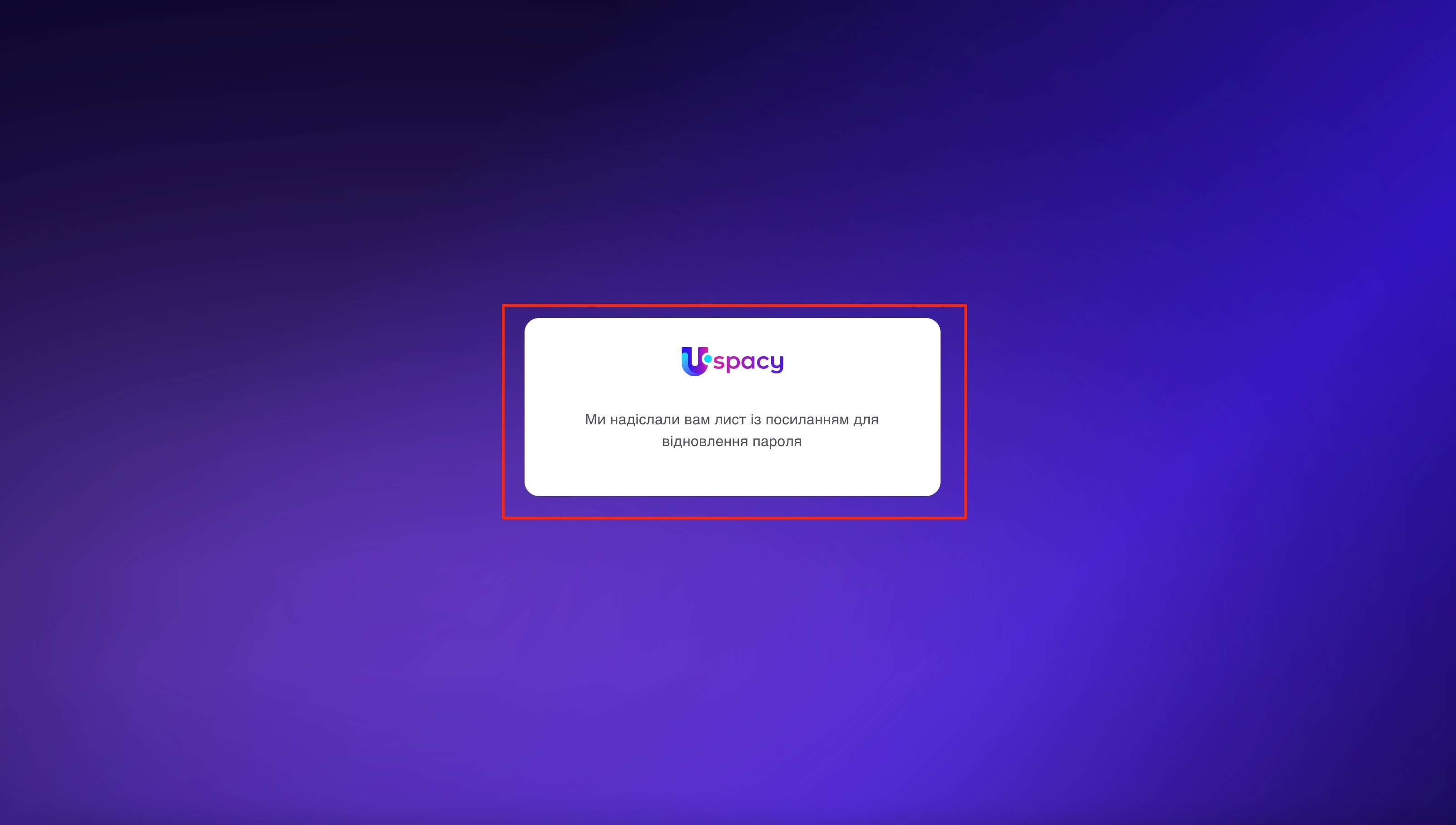 Після цього на вказану електронну адресу надійде лист для відновлення пароля. А система відобразить повідомлення про його успішне надсилання. Також буде можливість одразу перейти до скриньки.