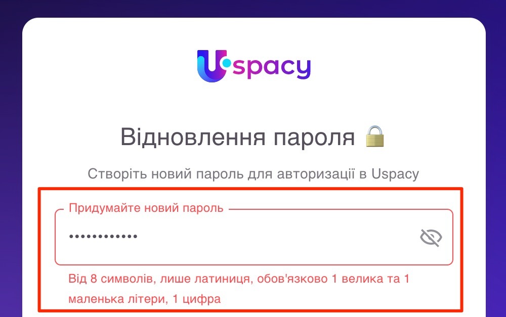 ❗️Якщо пароль не буде відповідати потрібному формату, то система повідомить про це й підсвітить поле червоним.