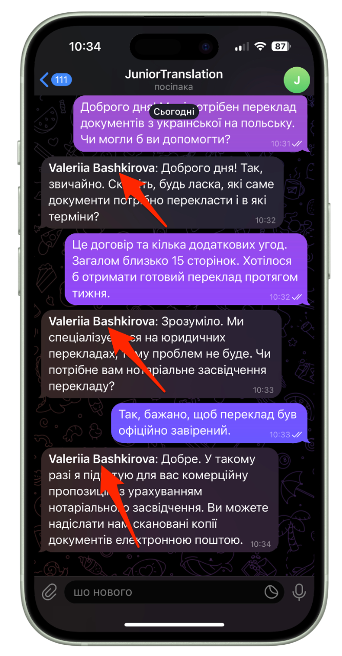 Тепер ви можете й далі спілкуватися в груповому чаті Telegram. Тільки тепер повідомлення будуть надходити одразу в Uspacy. І ви, не покидаючи робочий Простір, зможете відповідати на них.